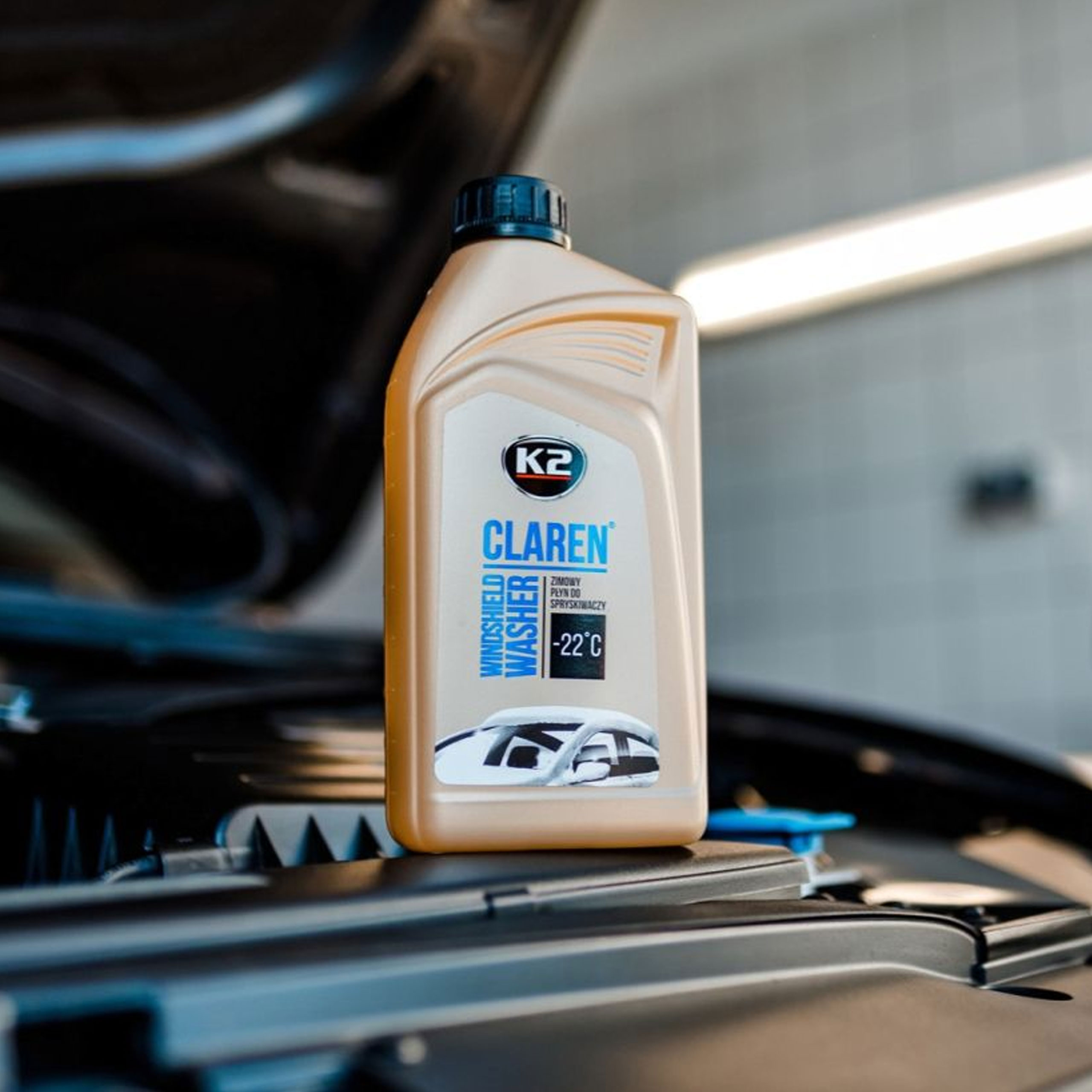 Formuła zimowego płynu do spryskiwaczy K2 Clarena została wzbogacona nanocząsteczkami, które tworzą na powierzchni szyby warstwę ochronną. Dzięki temu zostaje wygładzona, co zapobiega ponownemu osadzaniu się brudu. W czasie deszczu woda szybciej spływa z szyby, a wycieraczki wolniej się zużywają. Płyn K2 Claren jest całkowicie bezpieczny dla uszczelek i lakieru.