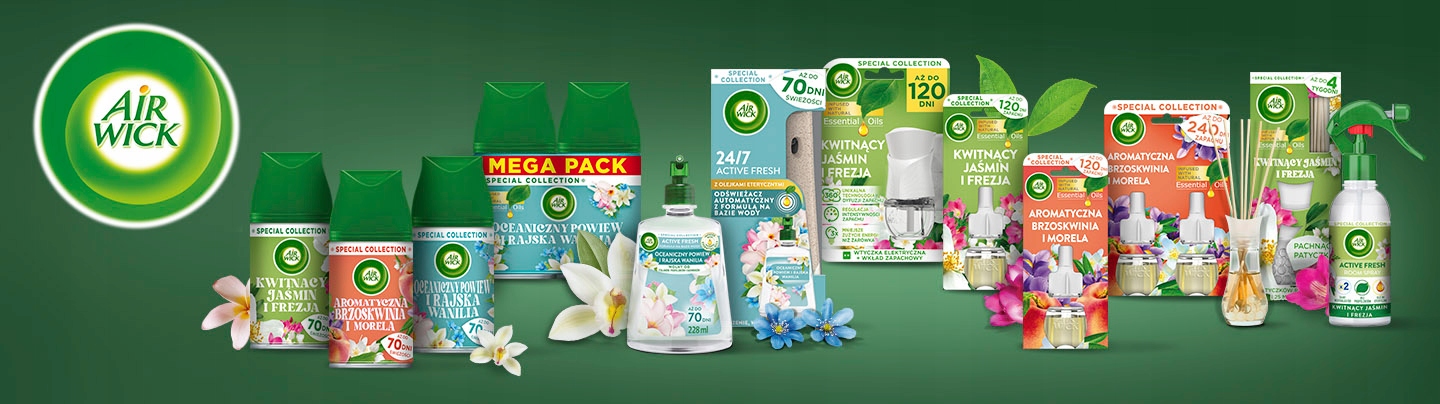 Air Wick 24/7 ACTIVE FRESH to wyjątkowa formuła stworzona ze starannie wyselekcjonowanych składników, którą wzbogaciliśmy o naturalne olejki eteryczne. Wolny od ftalanów, propelentów i barwników. Zaproś do swojego domu zapach niesamowitej świeżości i bądź w kontakcie z naturą!