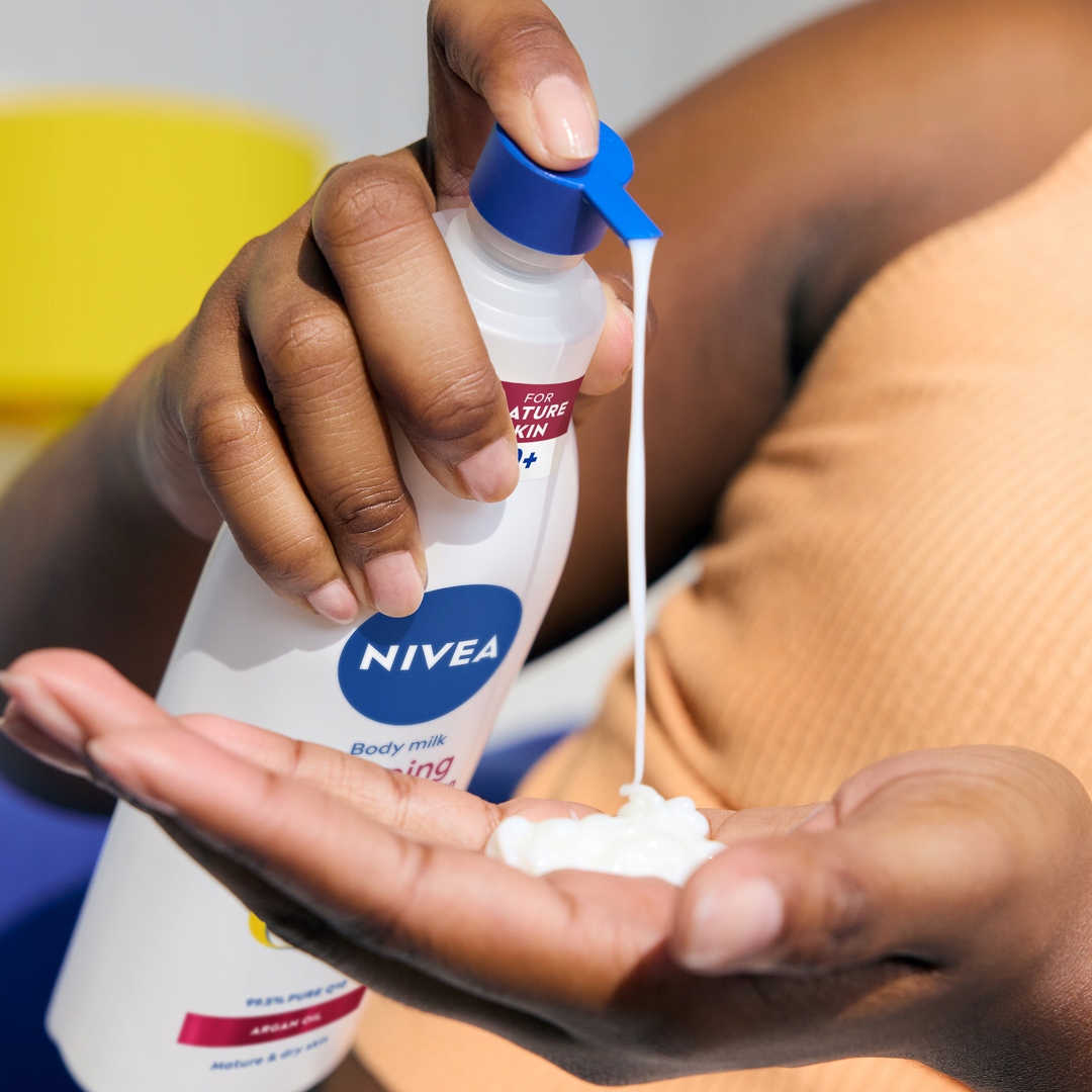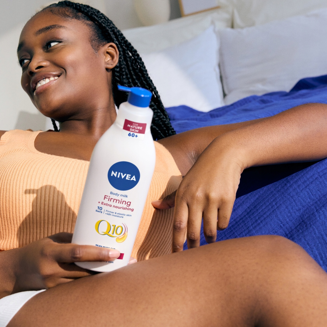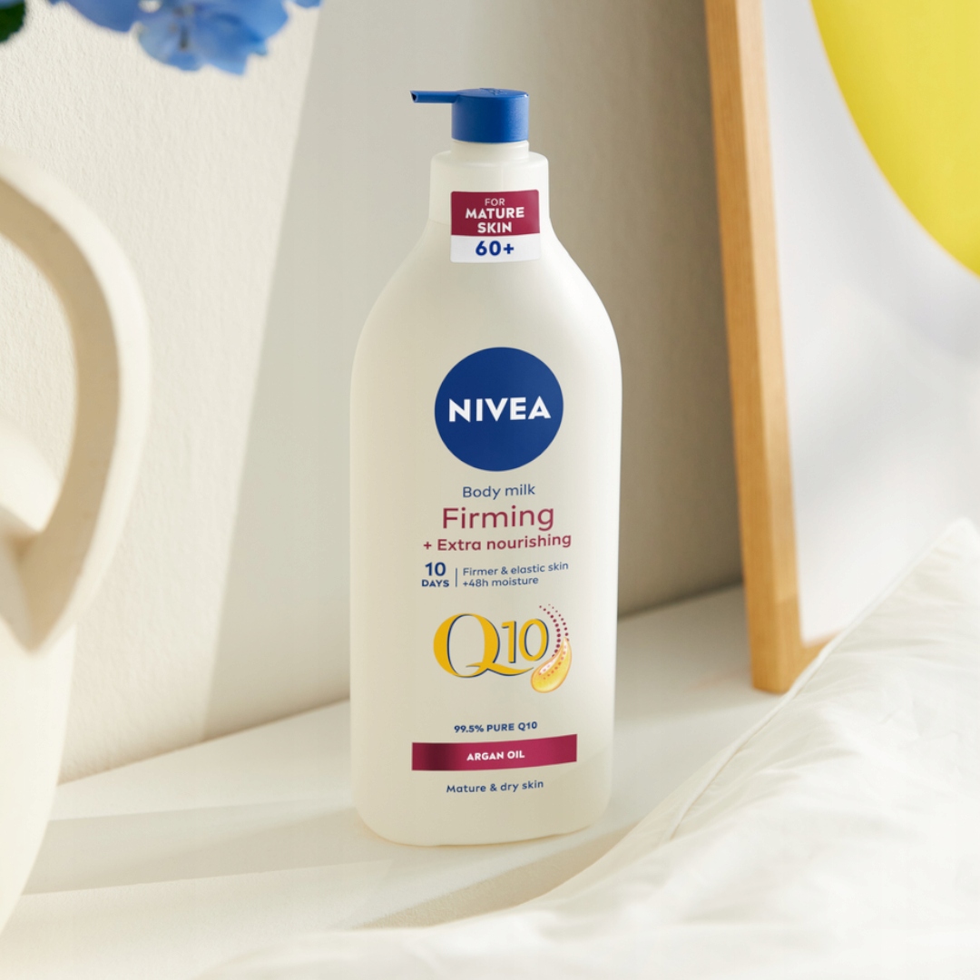 Przygotuj się na skórę pełną blasku i zdrowego wyglądu! Ujędrniający i odżywczy balsam do ciała z pompką zawiera formułę z koenzymem Q10 i organicznym olejkiem arganowym. Zauważalnie ujędrnia i poprawia elastyczność skóry już w 10 dni. Zapewnia 48-godzinne nawilżenie i przyjemny zapach. Produkt jest odpowiedni także dla suchej skóry ciała, dostarczając jej troski oraz nawilżenia. Jak uzyskać najlepszy efekt ujędrniający? Stosuj codziennie na całe ciało - po codziennym prysznicu nałóż obficie na ciało. Następnie delikatnie wmasuj mleczko w skórę, aby równomiernie rozprowadzić produkt. Tolerancja dla skóry została potwierdzona dermatologicznie. Wyjątkowa pielęgnacja od NIVEA oparta na ponad 100 latach doświadczenia w pielęgnacji skóry.