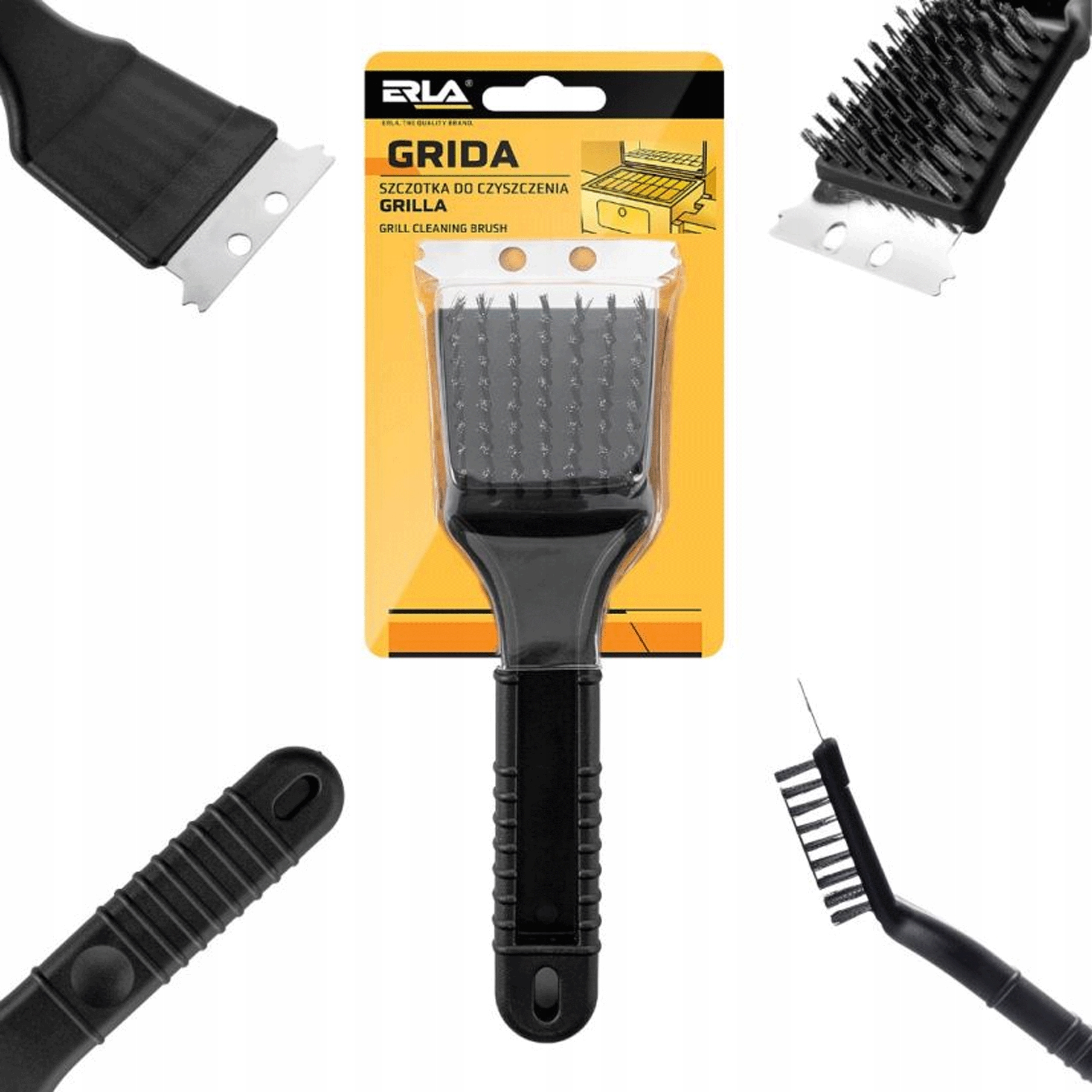 ERLA GRIDA to wysokiej jakości szczotka przeznaczona do czyszczenia grilla, rusztu oraz płyt grillowych.