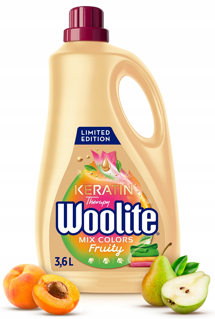 W ofercie jest dostępny Woolite Płyn do Kolorów Colour Fruity o pojemności 3,6l. To wyjątkowy produkt na rynku, który zostaje wyróżniony swoim niepowtarzalnym zapachem moreli i brzoskwini z nutami egzotycznych owoców. Dzięki Woolite Fruity Twoje pranie zawsze będzie pachniało świeżością lata, a Twoje ubrania pozostaną czyste i świeże na dłużej.
