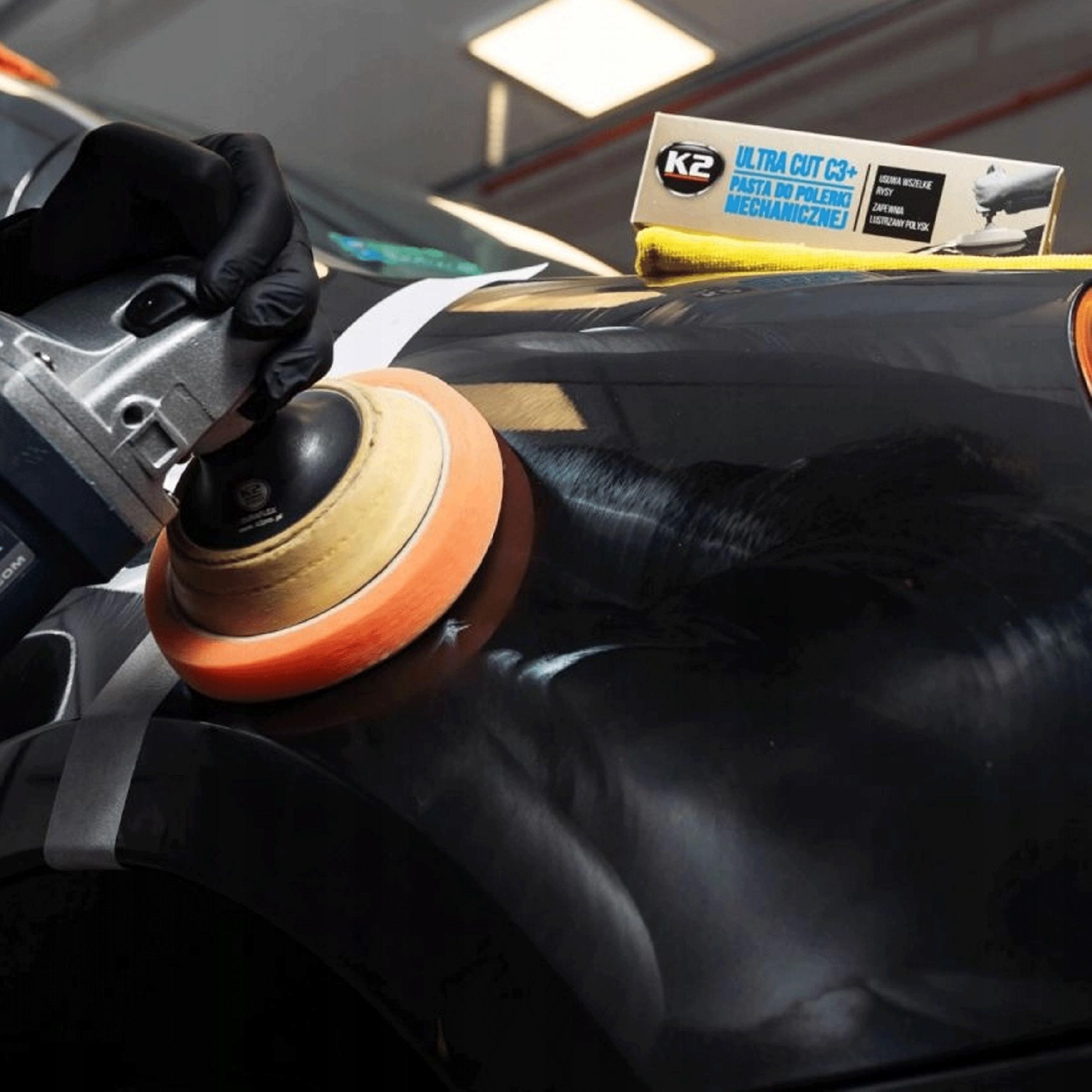 K2 ULTRA CUT C3+ to pasta do maszynowego polerowania lakieru. Usuwa bardzo duże rysy nawet po papierze gradacji 800 i daje perfekcyjny efekt końcowy o wysokim połysku. Eliminuje wszelkie defekty, skórkę pomarańczową, zacieki, oksydację, rysy i hologramy, przebarwienia.