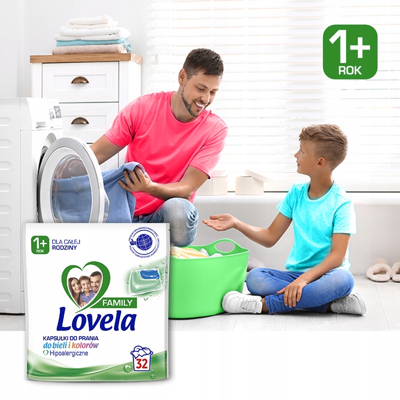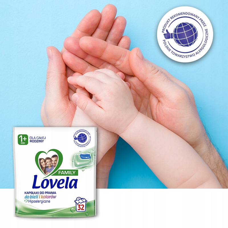 Lovela Family Kapsułki Hipoalergiczne do prania bieli i kolorów 32 sztuki