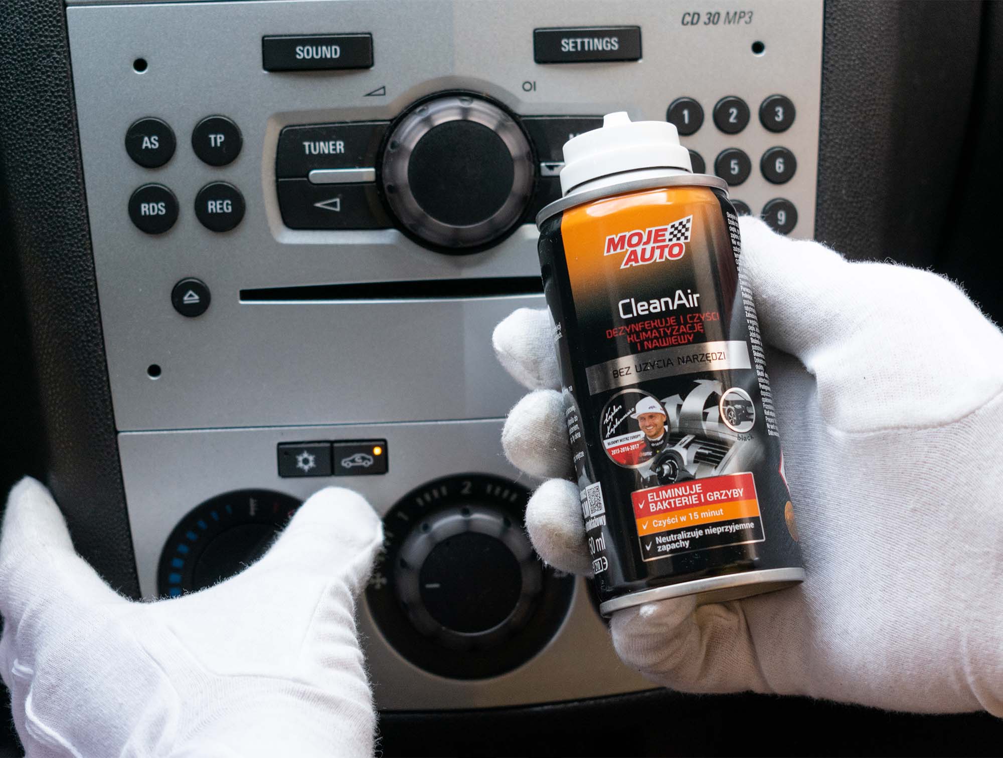 Środek do odgrzybiania klimatyzacji Moje Auto CleanAir oprócz swoich właściwości oczyszczających, również odświeża wnętrze Twojego samochodu. Preparat do odgrzybiania klimatyzacji Moje Auto CleanAir usuwa nieprzyjemne zapachy spowodowane zaleganiem zanieczyszczeń i wilgocią zapewniając świeży zapach we wnętrzu samochodu. Eliminuje bakterie i grzyby. Substancje zawarte w preparacie działają skutecznie już po 15 minutach.