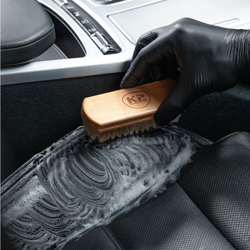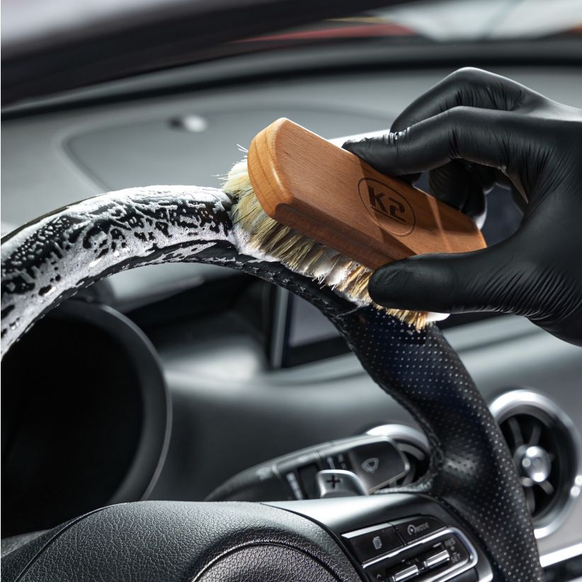 Szczotka do czyszczenia skórzanej tapicerki K2 Auron Soft z miękkim naturalnym włosiem to niezbędne narzędzie dla każdego, kto pragnie utrzymać skórę w samochodzie, w idealnym stanie.