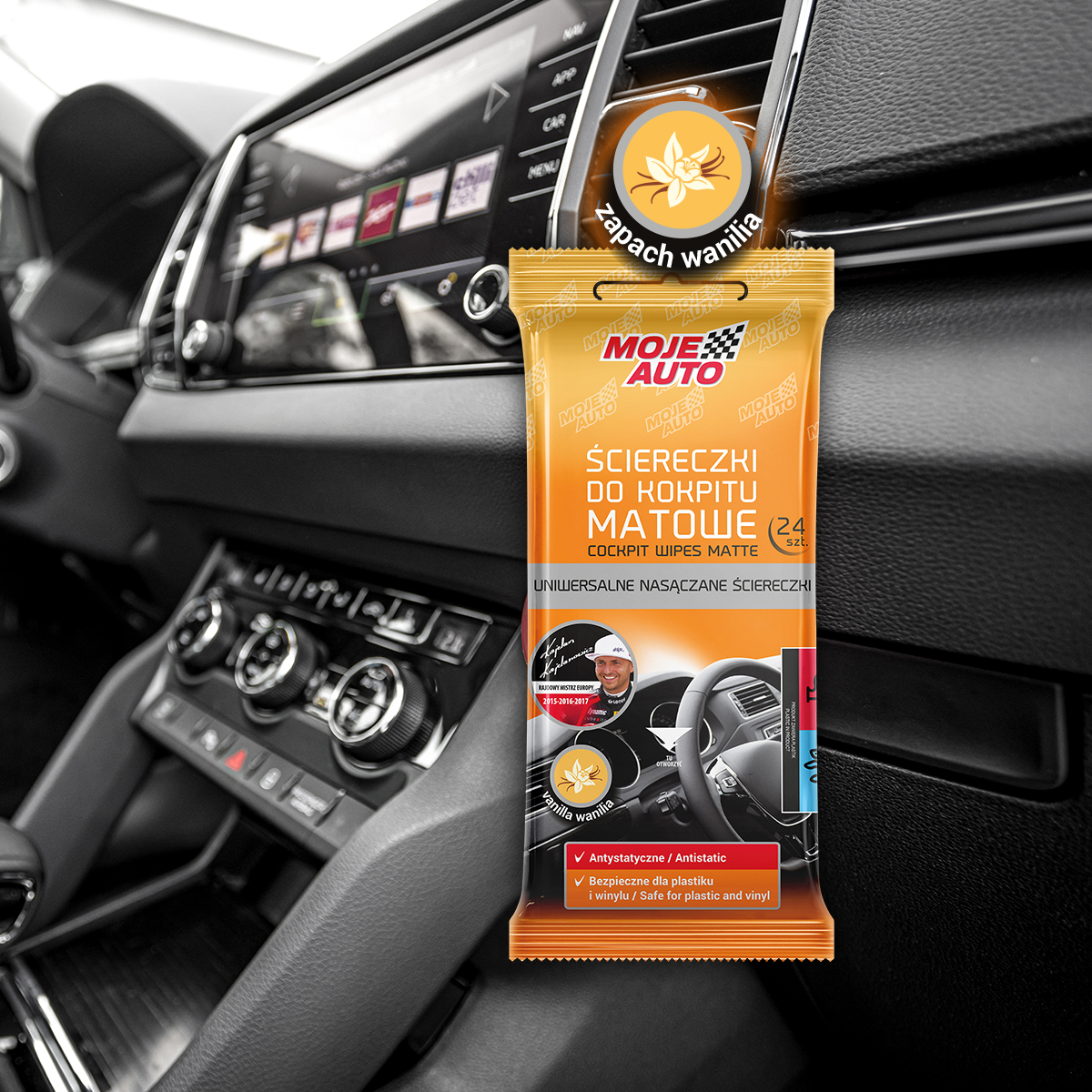 MOJE AUTO ŚCIERECZKI DO CZYSZCZENIA KOKPITU NAWILŻANE MATOWE WANILIA 24SZT