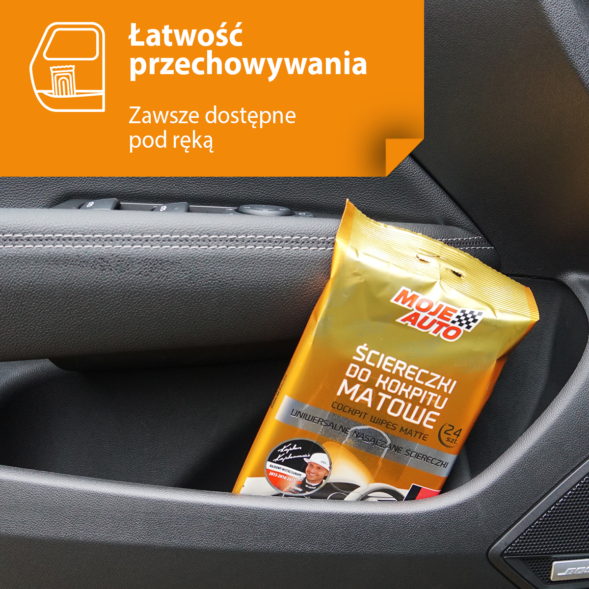 ŚCIERECZKI DO CZYSZCZENIA KOKPITU NAWILŻANE MATOWE MOJE AUTO 24 SZT