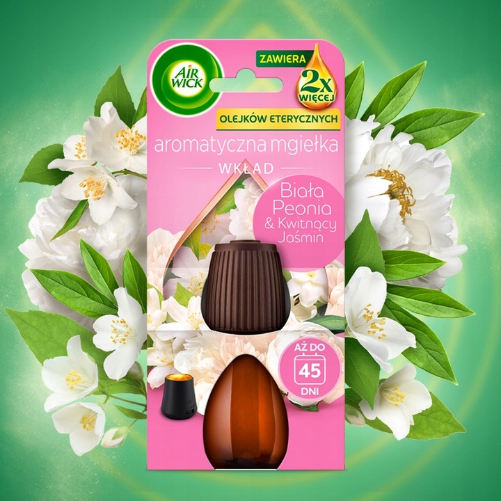 AIR WICK AROMATYCZNA MGIEŁKA O ZAPACHU BIAŁA PEONIA & KWITNĄCY JAŚMIN WKŁAD 20ML Z PODWOJONĄ ZAWARTOŚCIĄ OLEJKÓW ETERYCZNYCH*