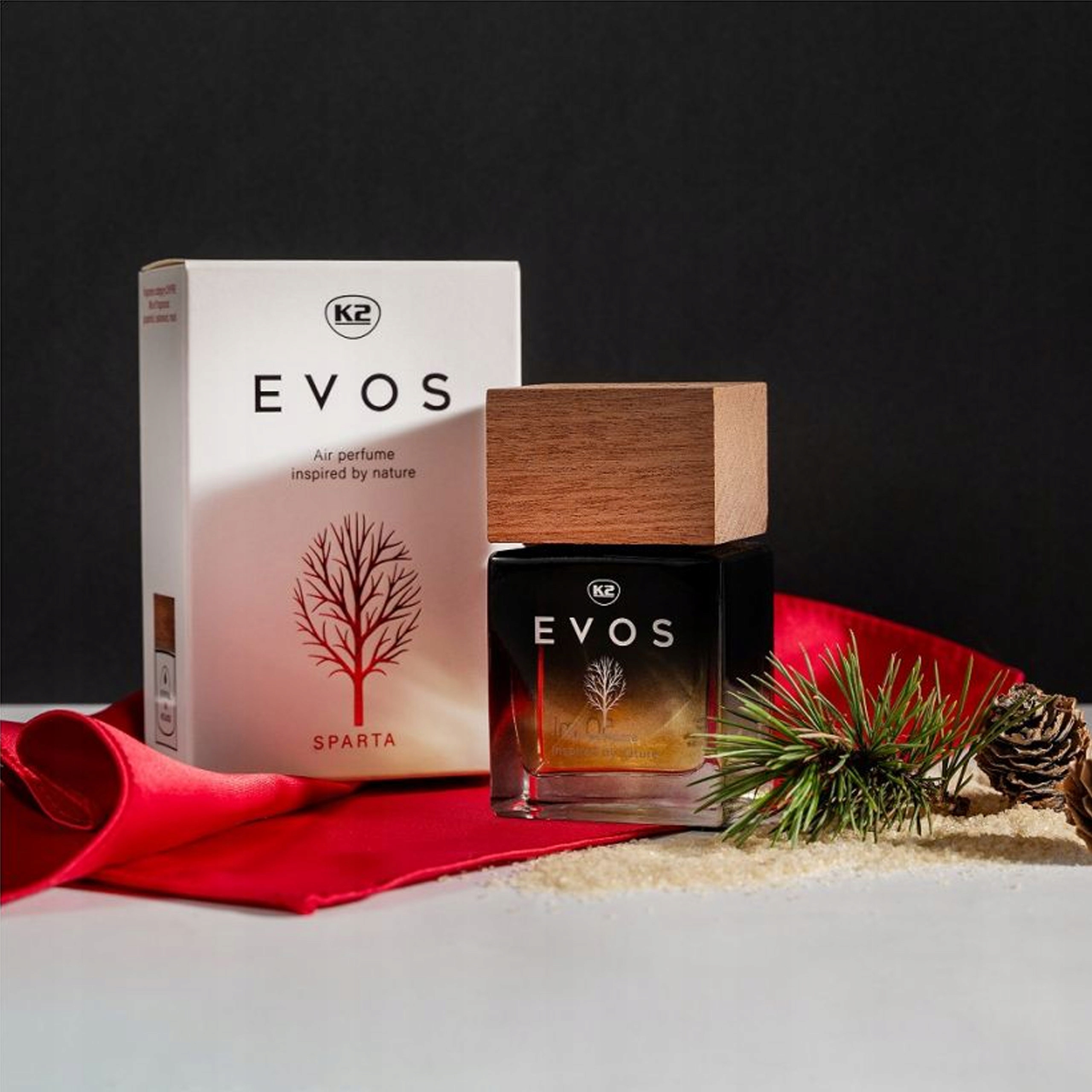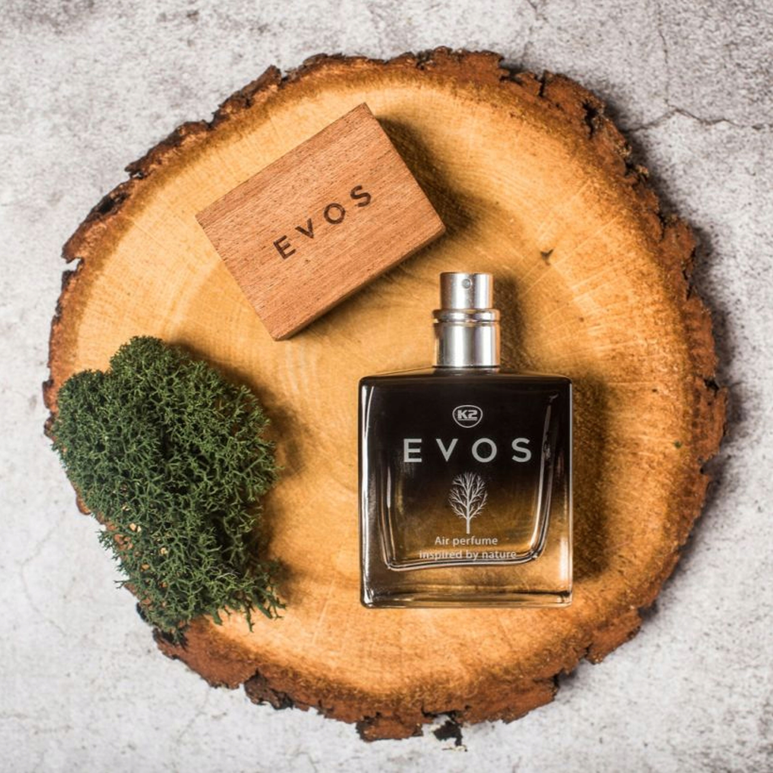 Perfumy do samochodu K2 EVOS to inspirowana naturą, niezwykła kompozycja wyjątkowych nut zapachowych, zaprojektowana z myślą o wnętrzach nowoczesnych aut.