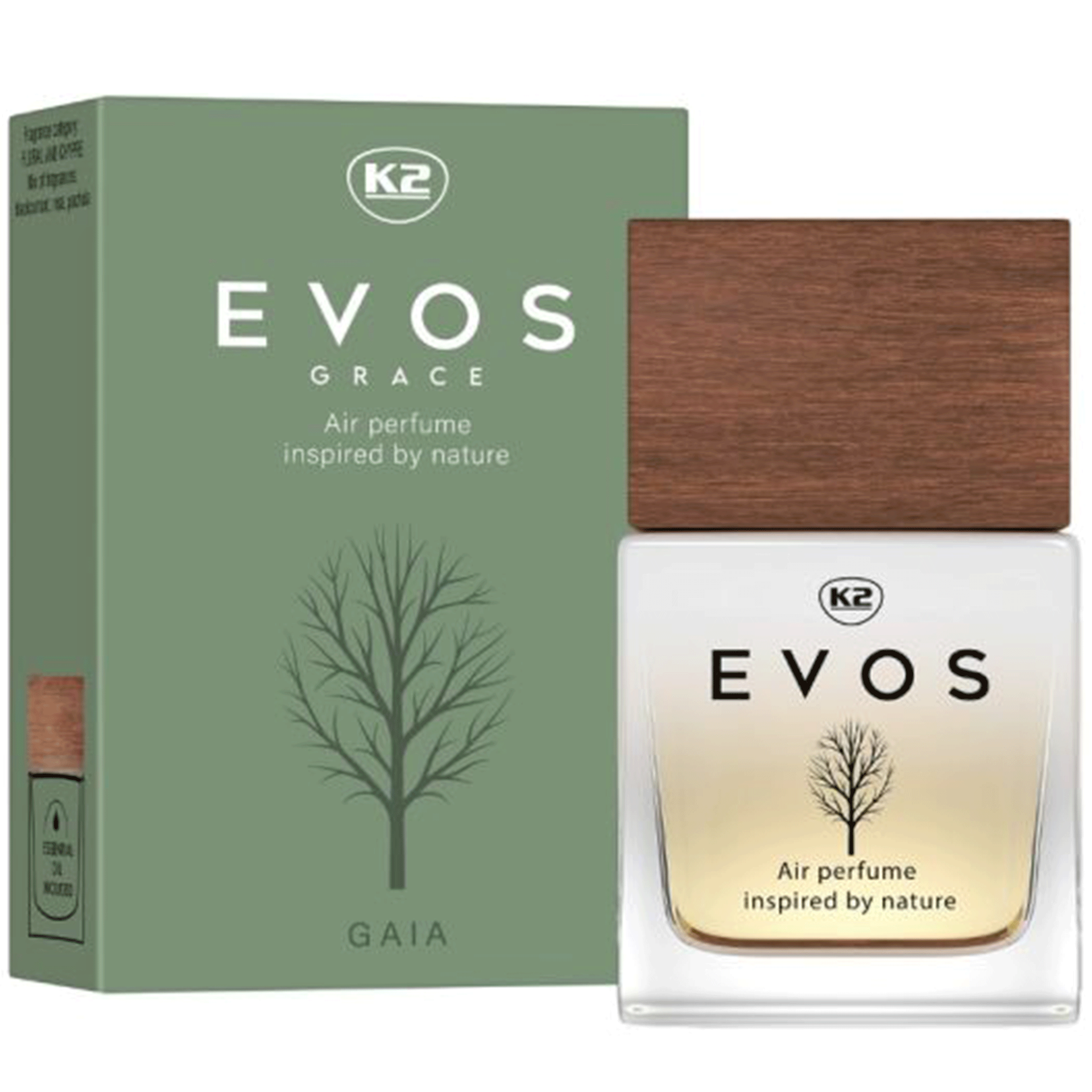 Perfumy do samochodu K2 EVOS GRACE to inspirowana naturą, niezwykła kompozycja wyjątkowych nut zapachowych, zaprojektowana z myślą o wnętrzach nowoczesnych aut.Rozpylony we wnętrzu aromat EVOS GRACE nadaje mu elegancji i wytworności, podnosi komfort przebywania w nim. Jazda samochodem staje się przyjemnością, wytchnieniem i ucieczką do wykwintnego świata luksusu. Specjalnie dobrane kompozycje zapachowe z olejkami eterycznymi, urzekają bogactwem i głębią zapachu.