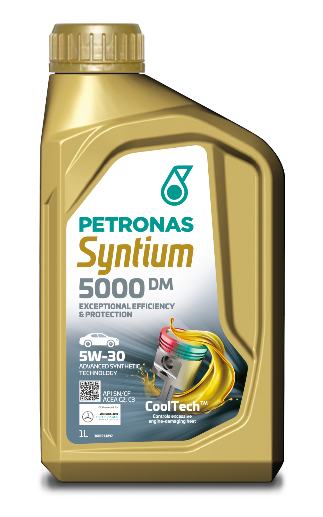 PETRONAS Syntium 5000 DM 5W-30 SN to w pełni syntetyczny środek smarny, opracowany z technologią °CoolTech™, która skutecznie kontroluje ciepło, opierając się utlenianiu i zapobiegając degradacji oleju oraz gromadzeniu się osadów, aby chronić elementy silnika i utrzymywać jego wydajność przez cały okres eksploatacji.Jest formułowany z technologią oleju silnikowego przyjazną dla środowiska, co czyni go odpowiednim do utrzymania wysokiej efektywności systemów po-treatmentowych gazów wydechowych oraz ekonomii paliwowej.Został szczególnie zaprojektowany do samochodów osobowych z silnikami benzynowymi z bezpośrednim wtryskiem oraz silnikami diesla, takimi jak Mercedes Benz i VW (proszę zapoznać się z instrukcją obsługi). Nadaje się również do SUV-ów, lekkich furgonetek i pojazdów zasilanych biopaliwami, wyposażonych w systemy po-treatmentowe spalin oraz urządzenia kontrolujące emisje, takie jak filtry cząstek stałych w silnikach diesla i katalizatory; wtryskiwacze paliwa, wielozawory czy turbosprężarki pracujące w trudnych warunkach.Dzięki naszemu doświadczeniu w motorsporcie, zasilając najbardziej efektywne silniki hybrydowe, opracowaliśmy PETRONAS Syntium, kompletną gamę środków smarnych, aby pomóc kierowcom maksymalizować każdą kroplę energii.Specyfikacje i Dopuszczenia