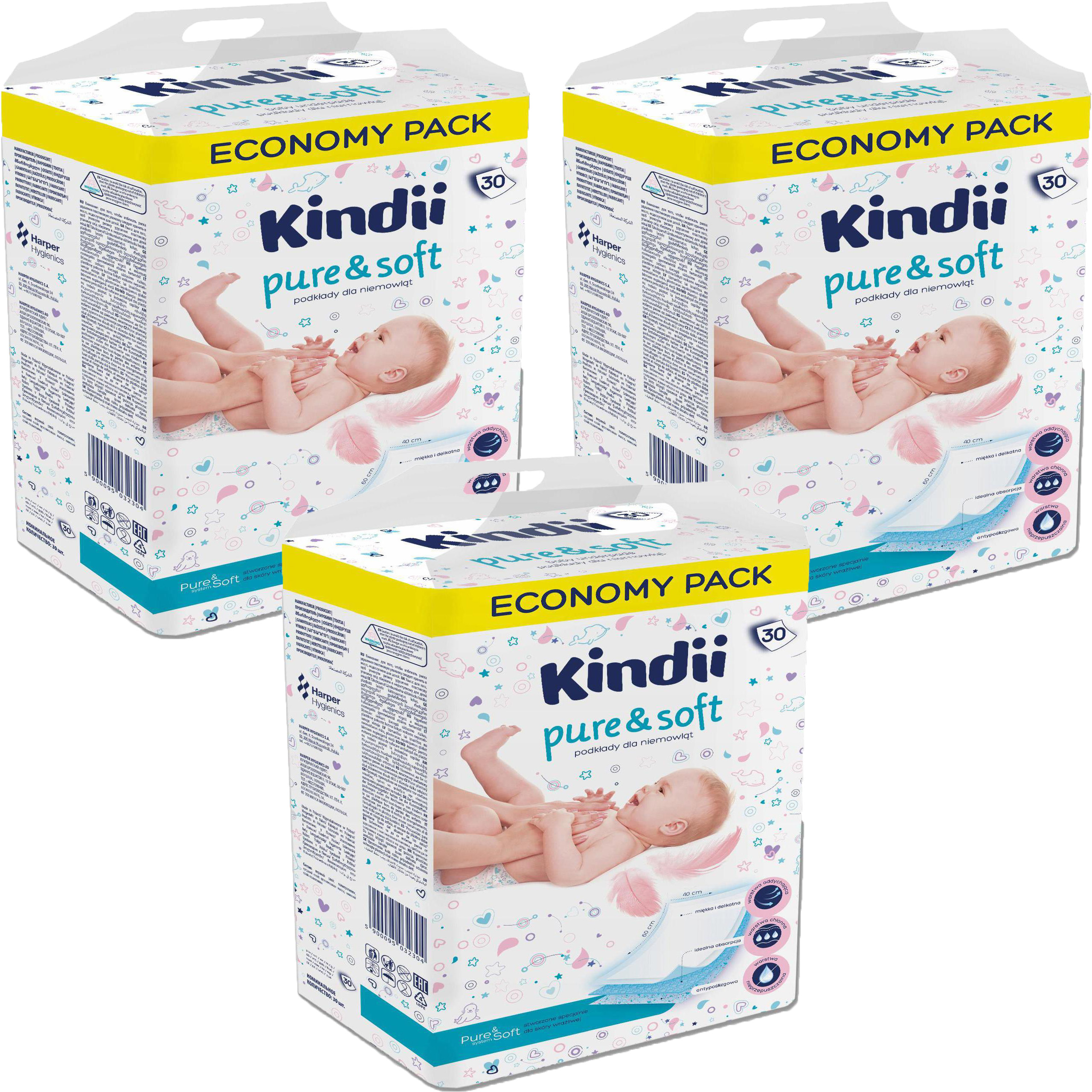 PODKŁADY DLA NIEMOWLĄT KINDII PURE & SOFT 30 sztuk x 3