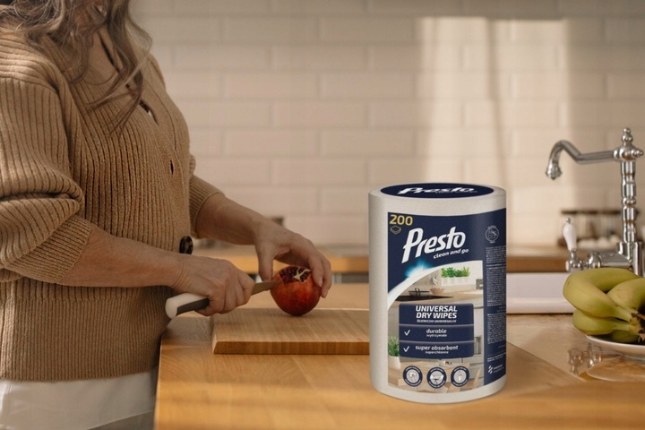 Ściereczki uniwersalne Presto to pozycja obowiązkowa dla każdego, kto pragnie utrzymać swój dom w czystości i eleganckim wyglądzie, bez konieczności posiadania różnorodnych rodzajów ściereczek do różnych celów. Ich użycie jest niezwykle wygodne, a skuteczność niepodważalna. Dzięki uniwersalności, ściereczki Presto stanowią jedno z najlepszych rozwiązań dla osób, które chcą mieć czysty i schludny dom bez konieczności używania wielu różnych ściereczek.Te uniwersalne ściereczki są skuteczne, trwałe oraz bardzo chłonne. Dzięki temu szybko i łatwo można wyczyścić powierzchnie takie jak blaty kuchenne, meble, armaturę łazienkową czy podłogi. Są one bardzo uniwersalne i mogą być używane zarówno na sucho, jak i na mokro, co daje użytkownikom elastyczność i pozwala na dostosowanie ich do indywidualnych potrzeb.