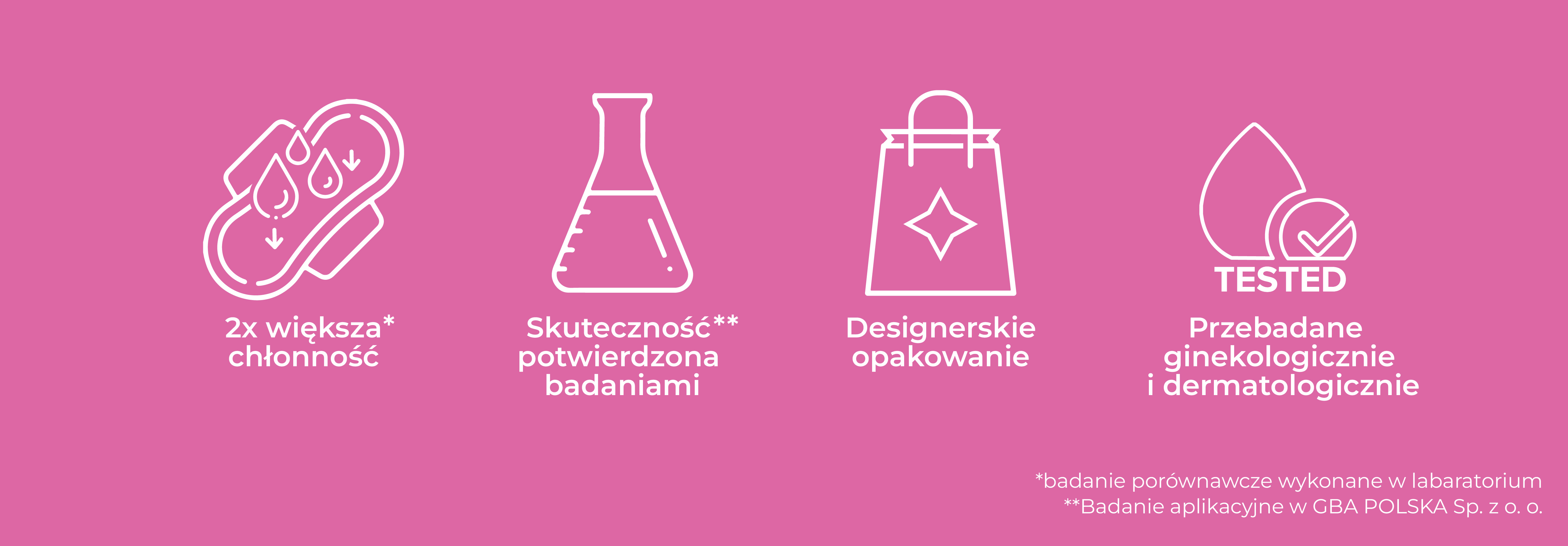 • 90% badanych potwierdziło skuteczność przed przeciekaniem, dobra chłonność oraz komfort w codziennym stosowaniu*