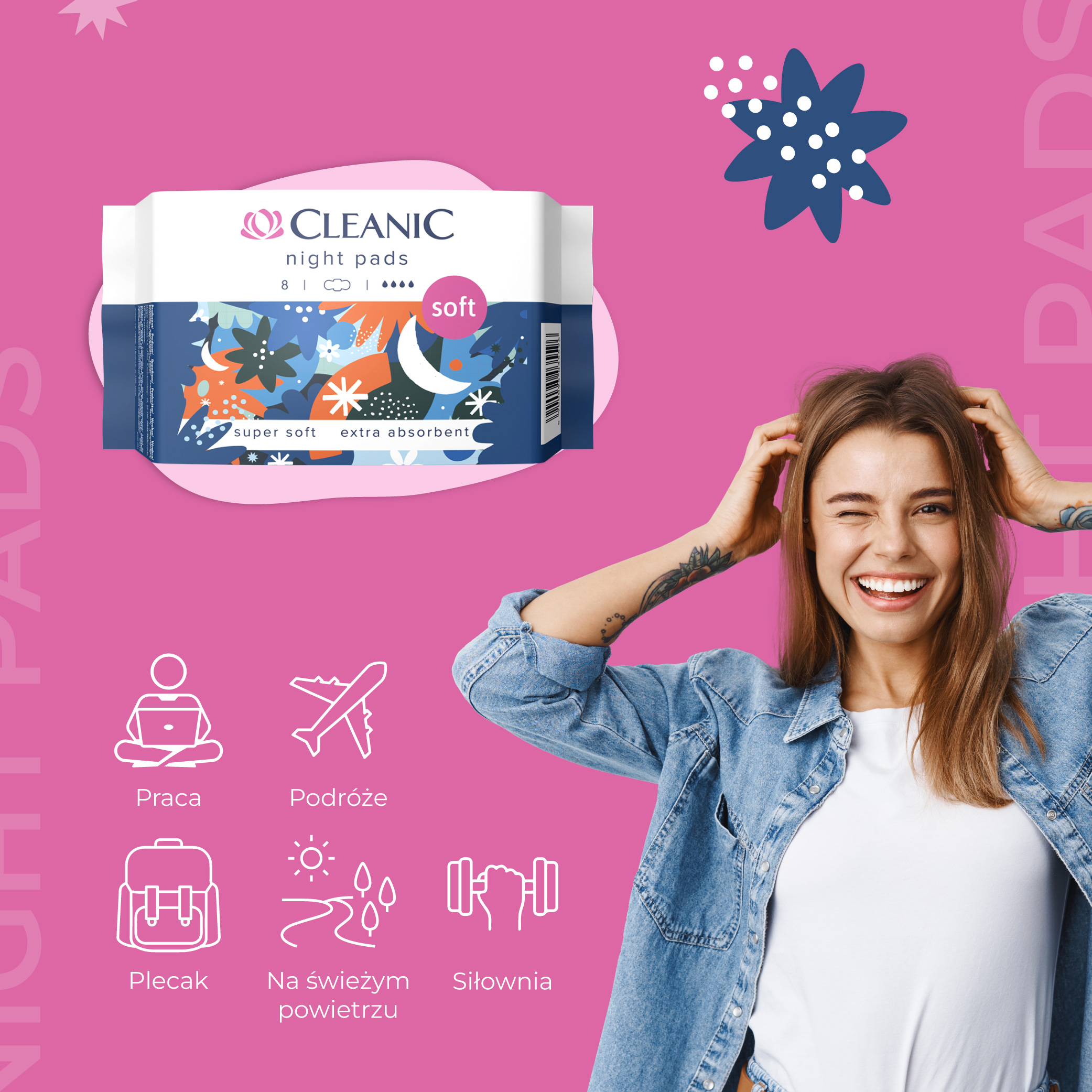 16 x Cleanic Soft Night Podpaski higieniczne 8 szt