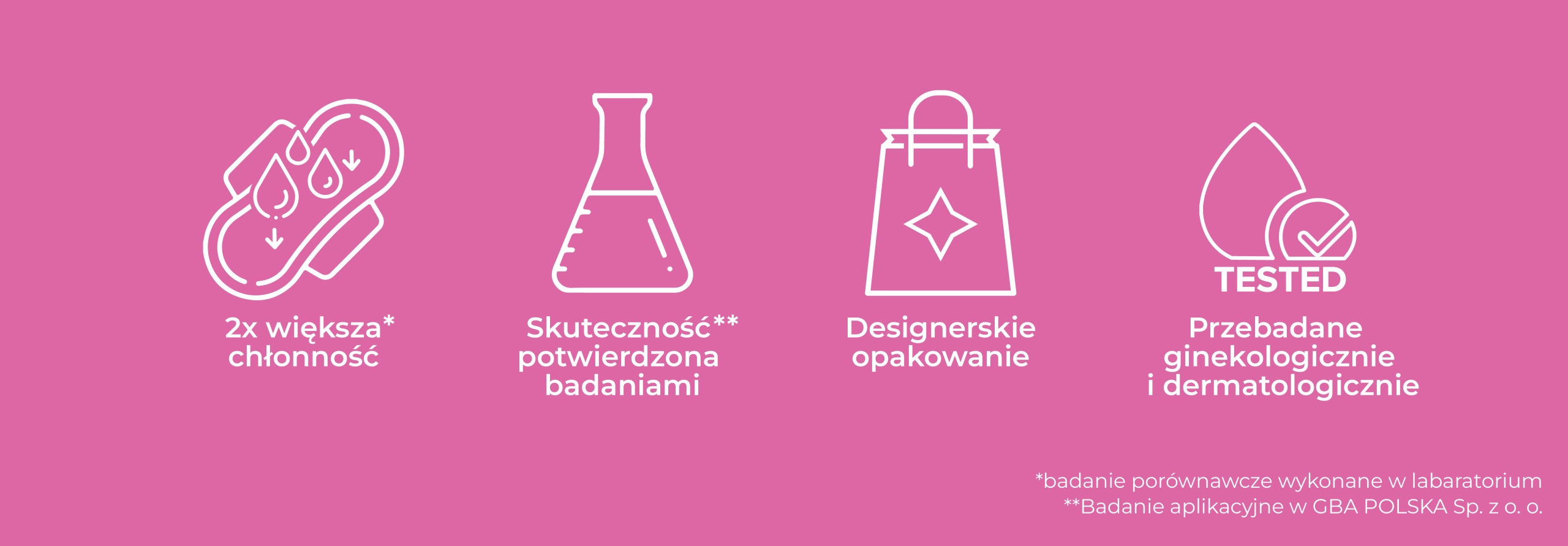 Specjalnie dla Ciebie połączyliśmy wykonaną w przełomowej technologii niezawodną warstwę chłonną i elastyczną warstwę wierzchnią, super wygodną i miękką dla Twojej skóry