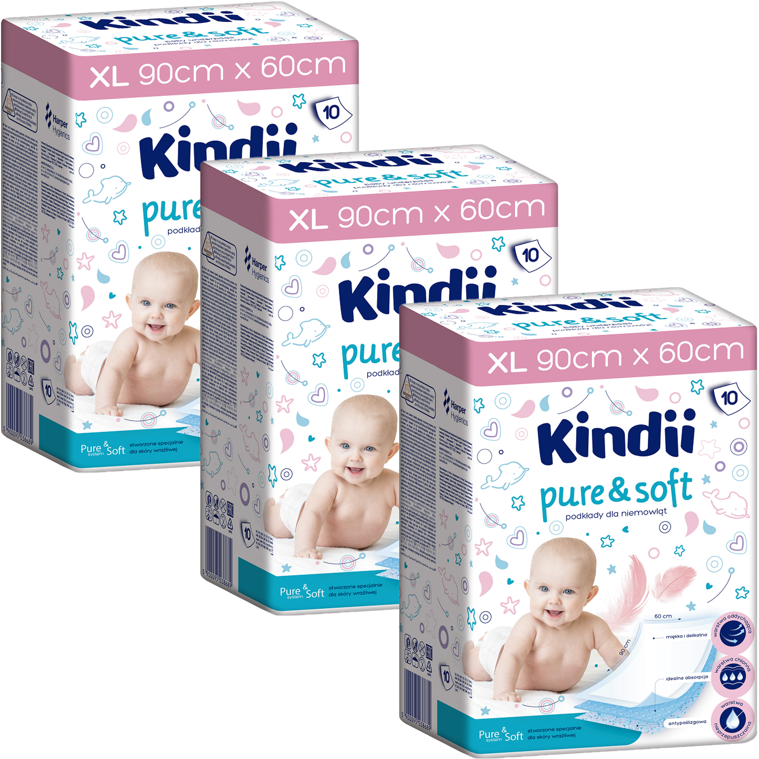 3 x Podkłady Kindii Pure&Soft 90x60cm 10 szt.