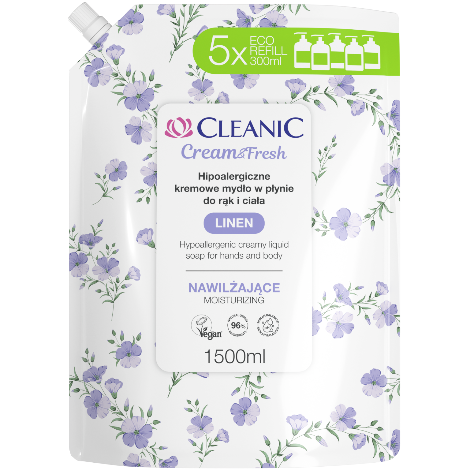 Cleanic Cream & Fresh Linen, hipoalergiczne, nawilżające kremowe mydło w płynie, 1500 ml