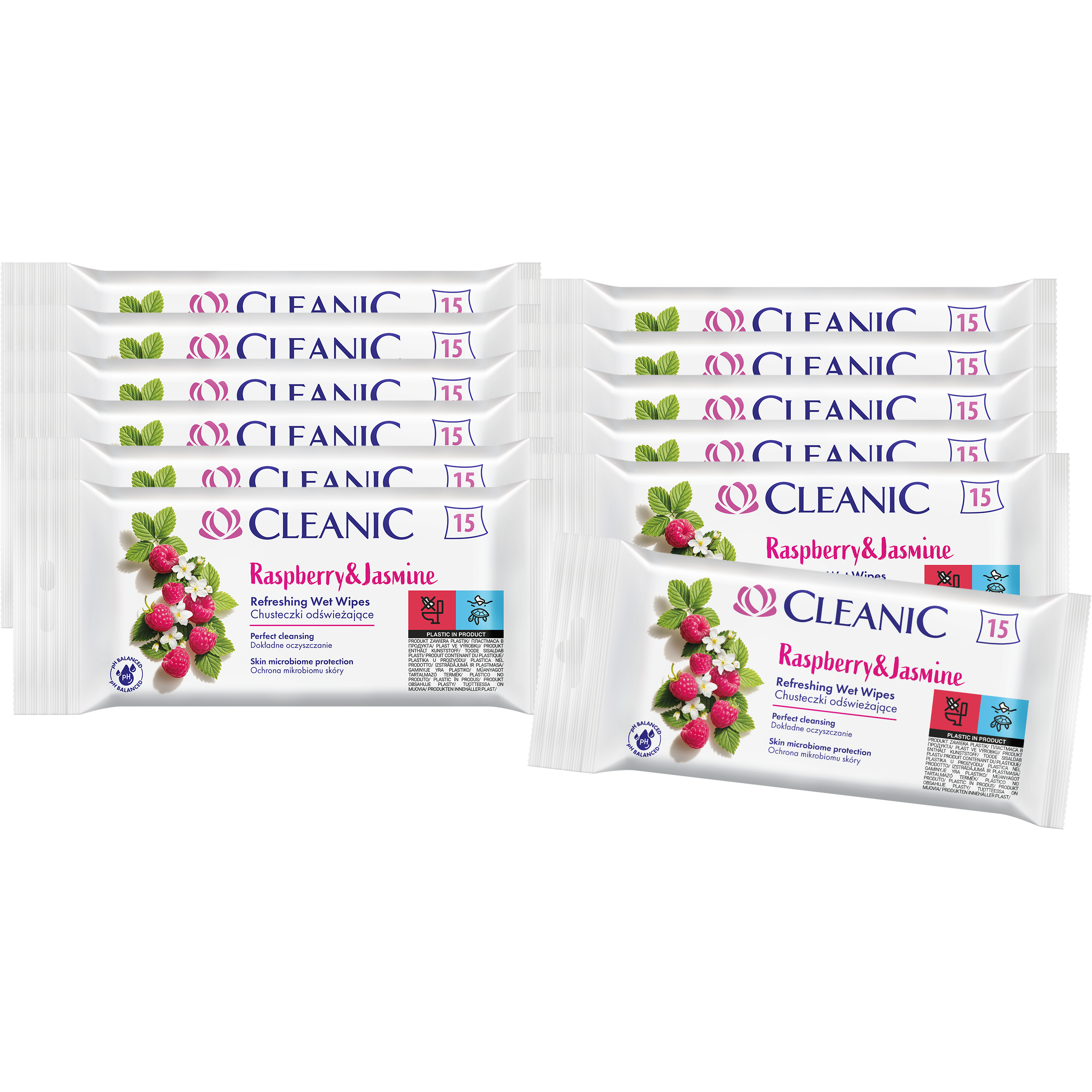 12 x Cleanic odświeżające chusteczki – Raspberry & Jasmine (15 szt.)