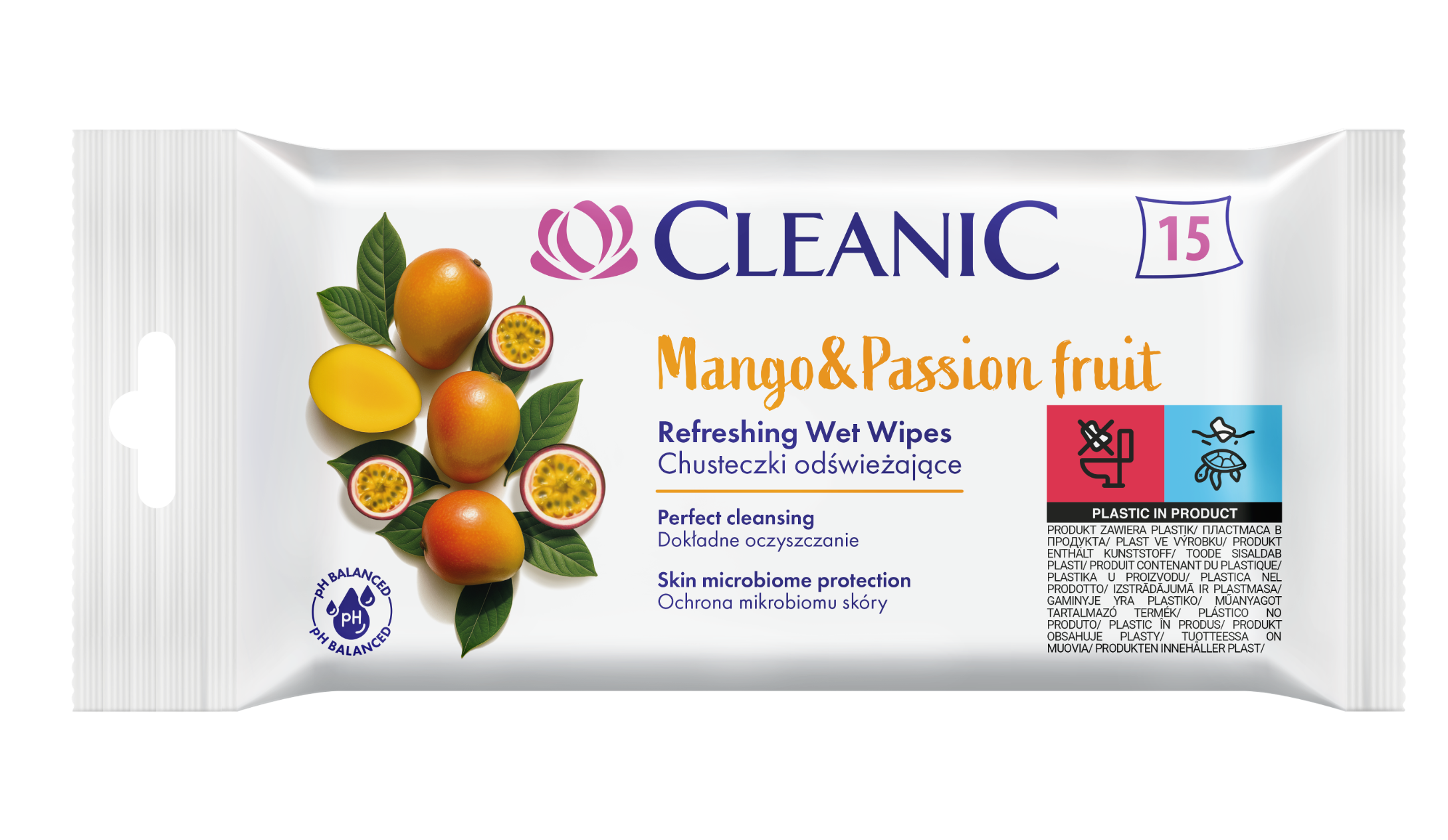 Cleanic odświeżające chusteczki – Mango & Passion Fruit (15 szt.)