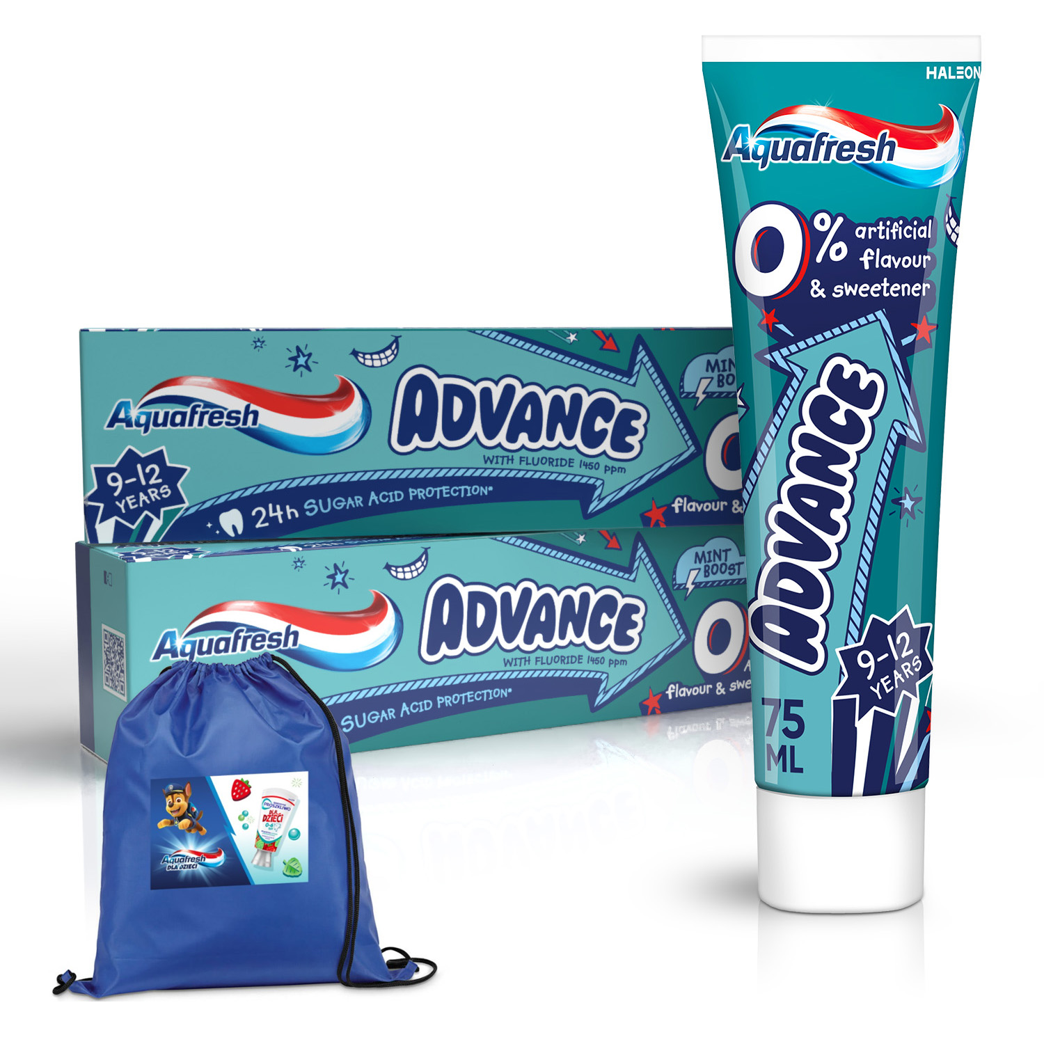 AQUAFRESH ADVANCE PASTA DO ZĘBÓW DLA DZIECI 9-12 LAT 75ML x2 + Plecak Gatis