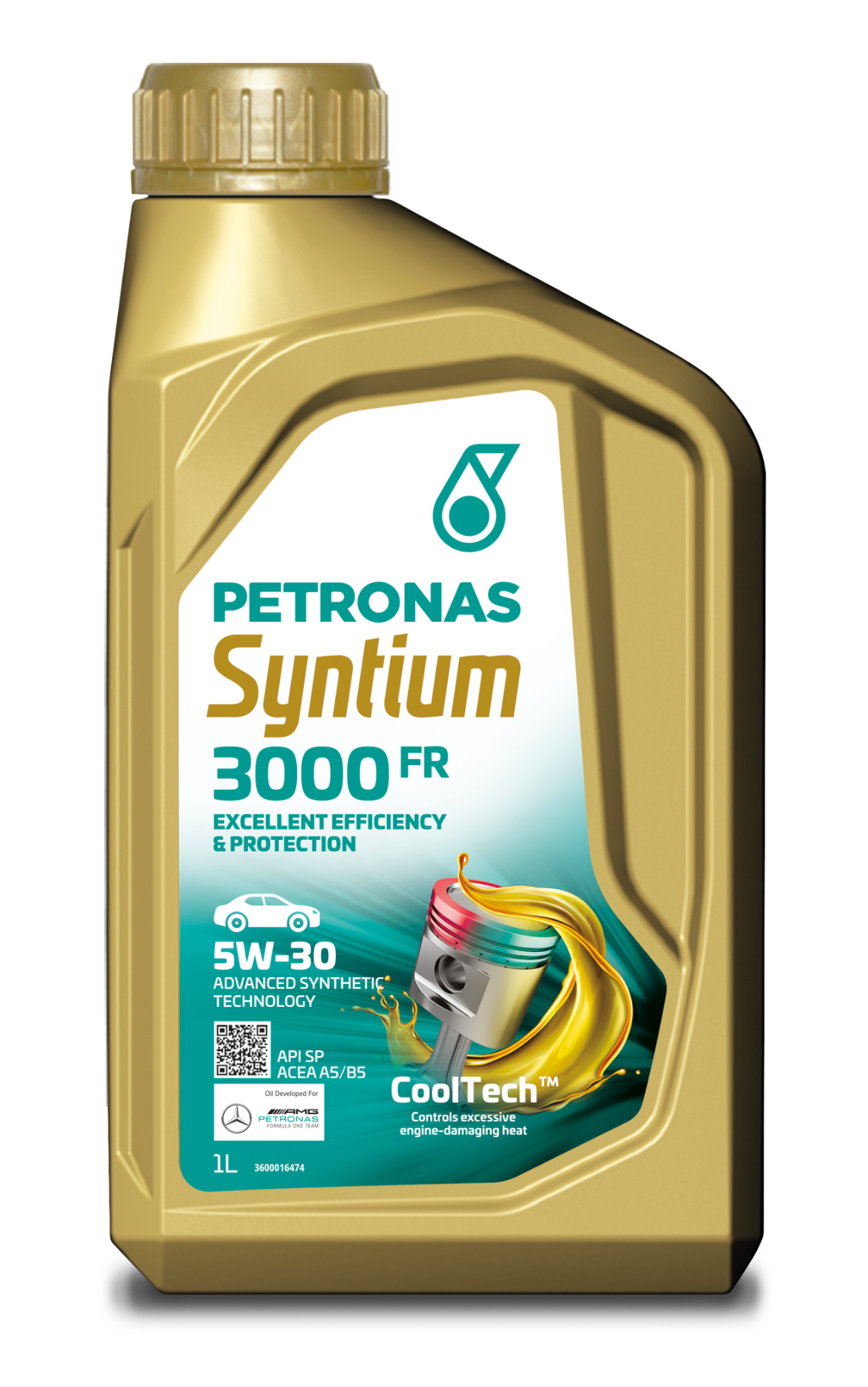 PETRONAS Syntium 3000 FR 5W-30 jest w pełni syntetycznym olejem silnikowym opracowanym w technologii °CoolTech™, która skutecznie kontroluje ciepło, zapobiegając utlenianiu oraz degradacji oleju i tworzeniu się osadów, aby chronić części i utrzymać wydajność silnika przez cały okres pomiędzy wymianami oleju.Powstał specjalnie dla samochodów osobowych, SUV-ów i dostawczych z silnikami benzynowymi z bezpośrednim wtryskiem paliwa i turbodoładowaniem oraz silnikami Diesla, na przykład marek Ford i Renault (należy zapoznać się z instrukcją obsługi). Nadaje się również do pojazdów we wtryskiwacze paliwa, głowice wielozaworowe lub turbosprężarki pracujące w trudnych warunkach.Dzięki naszemu doświadczeniu w sportach motorowych i wykorzystaniu najbardziej wydajnego silnika hybrydowego stworzyliśmy PETRONAS Syntium — kompletną gamę środków smarnych, aby pomóc kierowcom w maksymalnym wykorzystaniu każdej dawki energii.Specyfikacje i Dopuszczenia