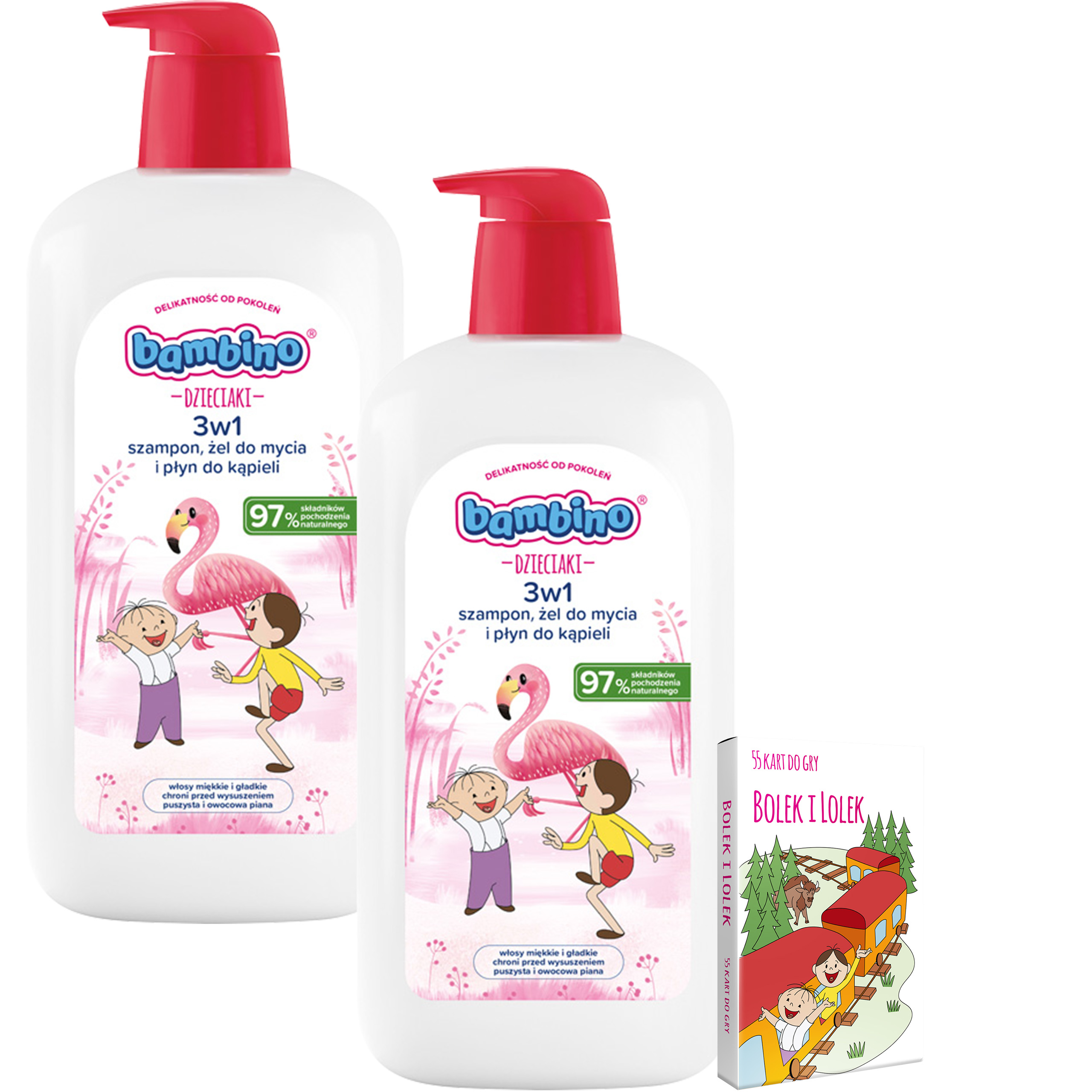 2 x Bambino Dzieciaki Żel do mycia, szampon i płyn do kąpieli 3w1, hiperdelikatny od 1. roku życia Flaming 1000ml