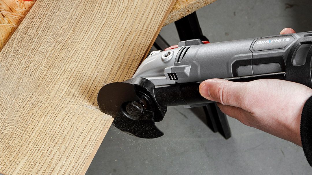 Urządzenie wielofunkcyjne 500 W, ilość oscylacji 8000-16000 min?1, walizka 59G025 GRAPHITE to uniwersalne urządzenie o wielu przeznaczeniach, zasilane sieciowo. Szlifierka wielofunkcyjna oferuje możliwość cięcia, szlifowania czy skrobania rozmaitych materiałów (drewna, metalu lub ceramiki). Głowica wykonuje od 8 000 do 16 000 oscylacji na minutę, a kąt jej działania wynosi 2,8°.