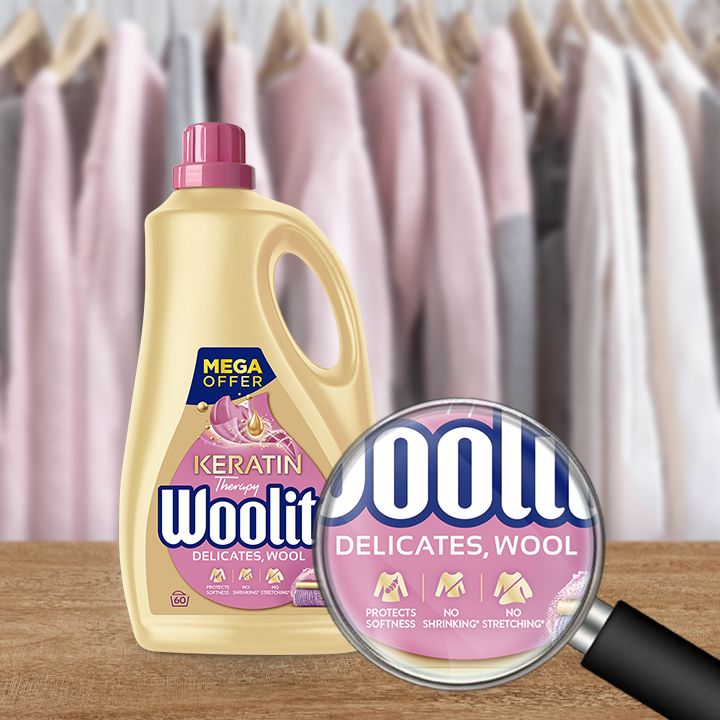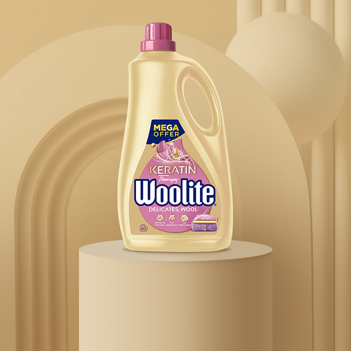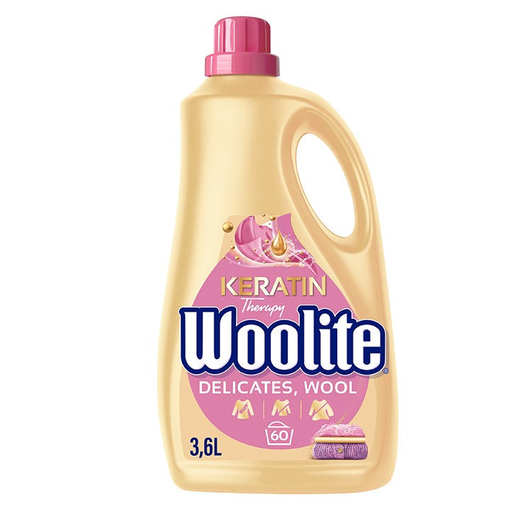 Woolite to jedyny na rynku płyn z keratyną, słynącą z wyjątkowych właściwości pielęgnacyjnych włosów. Keratyna dba o nie i regeneruje, wykazując świetne właściwości ochronne, nawilżające i wygładzające. Z tego względu jest chętnie wykorzystywana przez największych światowych producentów kosmetyków do pielęgnacji włosów.
