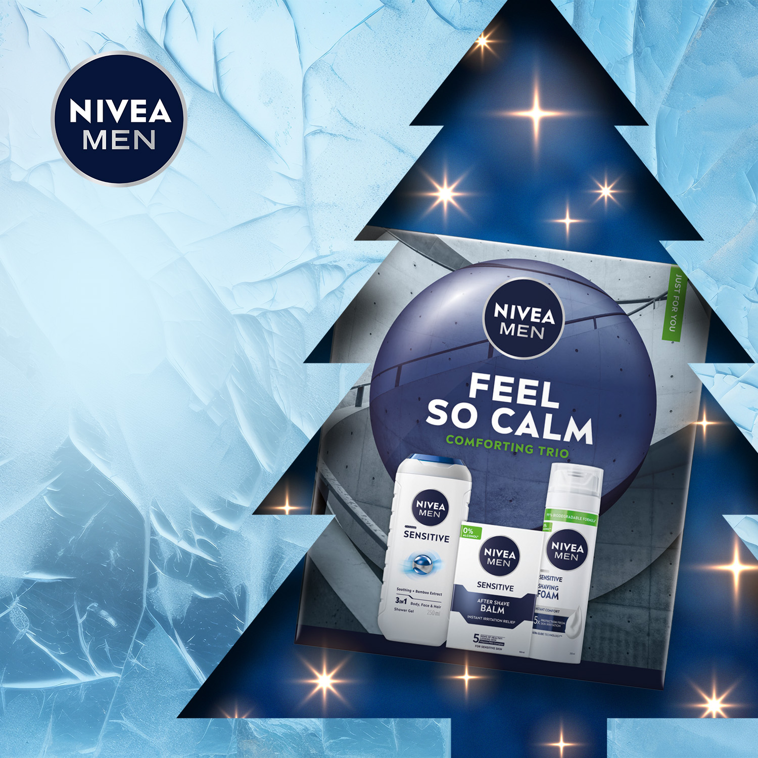 Męskie kosmetyki na prezent to świetny i sprawdzony pomysł. Wybierz zestaw NIVEA MEN FEEL SO CALM do komfortowego golenia. W zestawie do golenia znajdziesz piankę, balsam po goleniu oraz żel pod prysznic 3w1, do kompleksowej pielęgnacji męskiej skóry. Kosmetyki z linii NIVEA MEN Sensitive nie zawierają alkoholu* i są odpowiednie nawet dla mężczyzn o wrażliwej skórze.