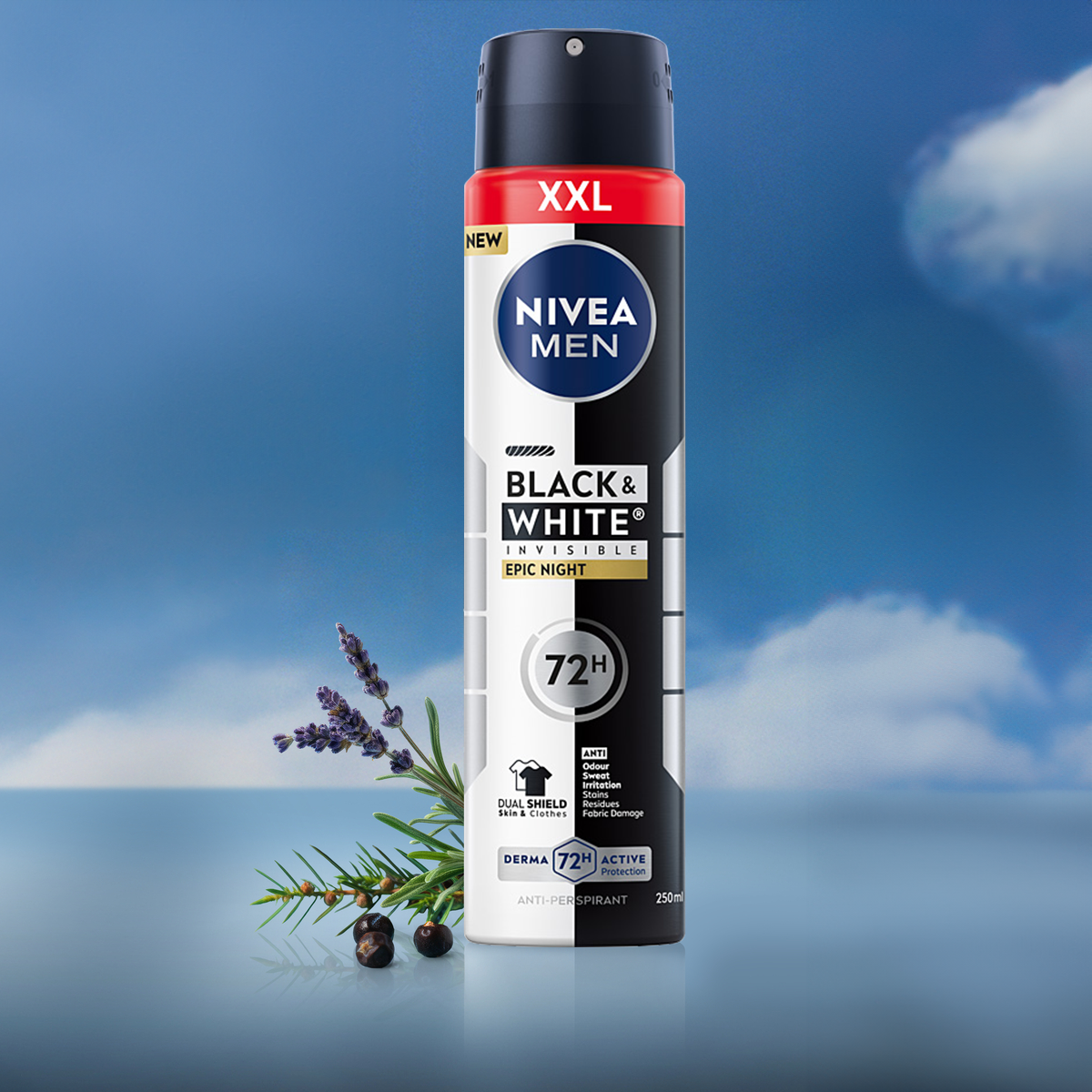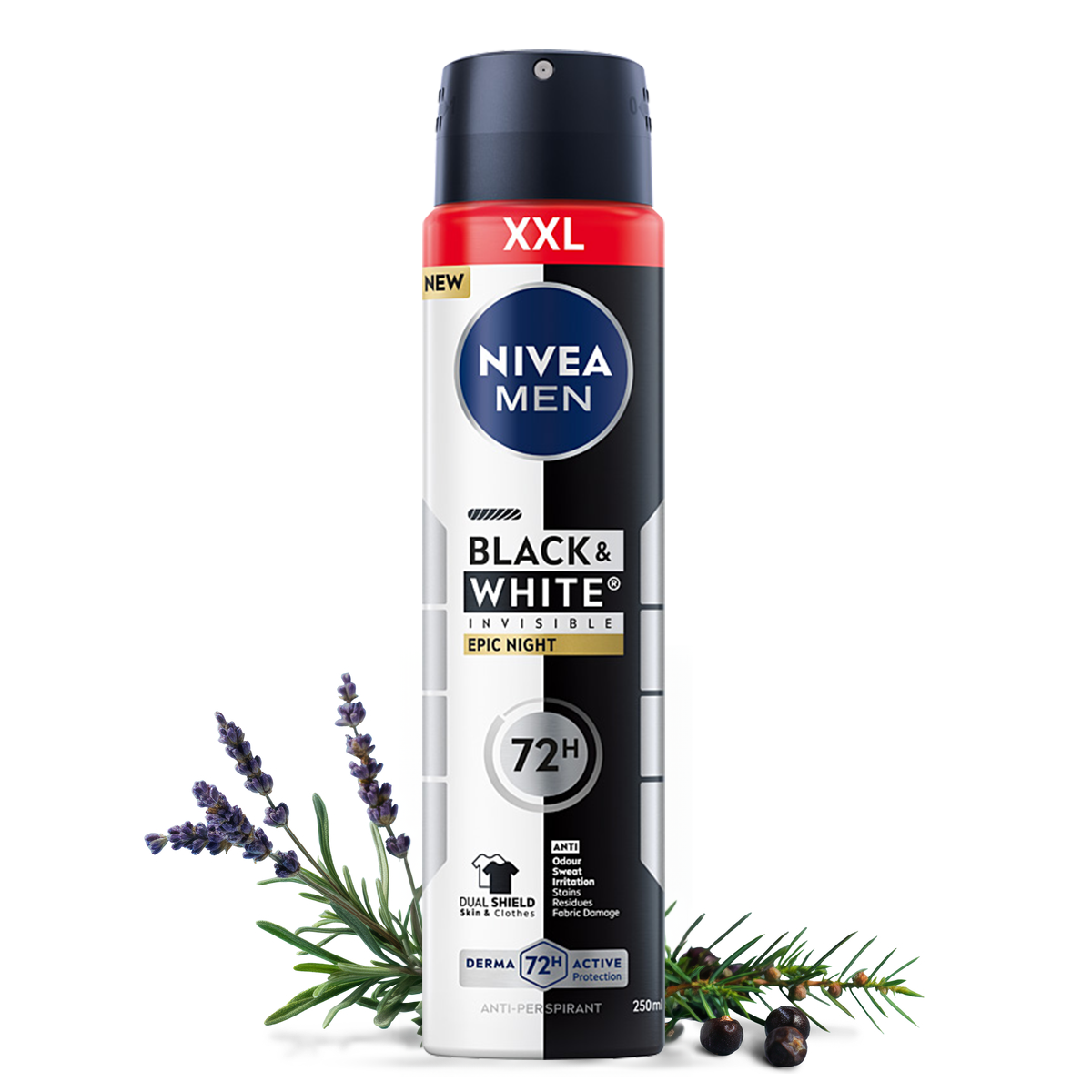 Wybierz antyperspirant NIVEA MEN Black&White Invisible Epic Night w powiększonym opakowaniu XXL 250 ml, aby zapewnić sobie bezkompromisowe wsparcie w codziennej pielęgnacji. Dzięki unikalnej technologii Dual Shield, ten zaawansowany dezodorant skutecznie chroni Twoją garderobę, eliminując problem białych śladów na ciemnych tkaninach oraz nieestetycznych żółtych plam na jasnych koszulach. Prezentowany antyperspirant oferuje niezawodną, aż 72-godzinną ochronę przed wilgocią i przykrym zapachem, pozostając przy tym wyjątkowo łagodnym dla skóry i minimalizując ryzyko podrażnień. Intensywnie męski, chłodzący zapach dostarcza natychmiastowej energii, a forma wydajnego sprayu gwarantuje błyskawiczne i precyzyjne odświeżenie w każdych okolicznościach. To potwierdzone dermatologicznie rozwiązanie idealnie współgra z dynamicznym trybem życia, a większa pojemność XXL to gwarancja jeszcze dłuższej ochrony i wygody stosowania każdego dnia.- Ochrona przed żółtymi plamami na białych ubraniach i białymi śladami na czarnych ubraniach