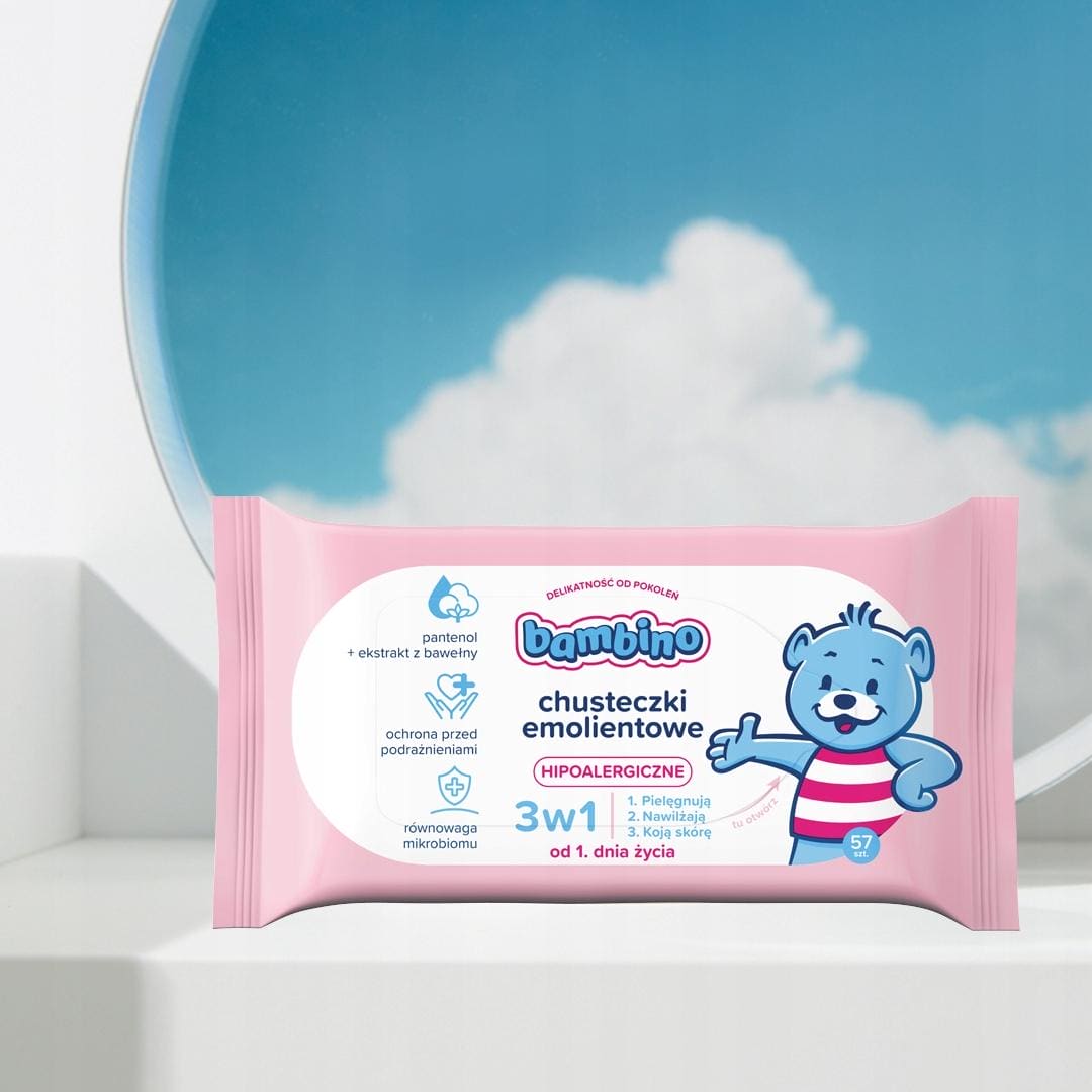 12 x BAMBINO Chusteczki emolientowe 3W1 57 szt.