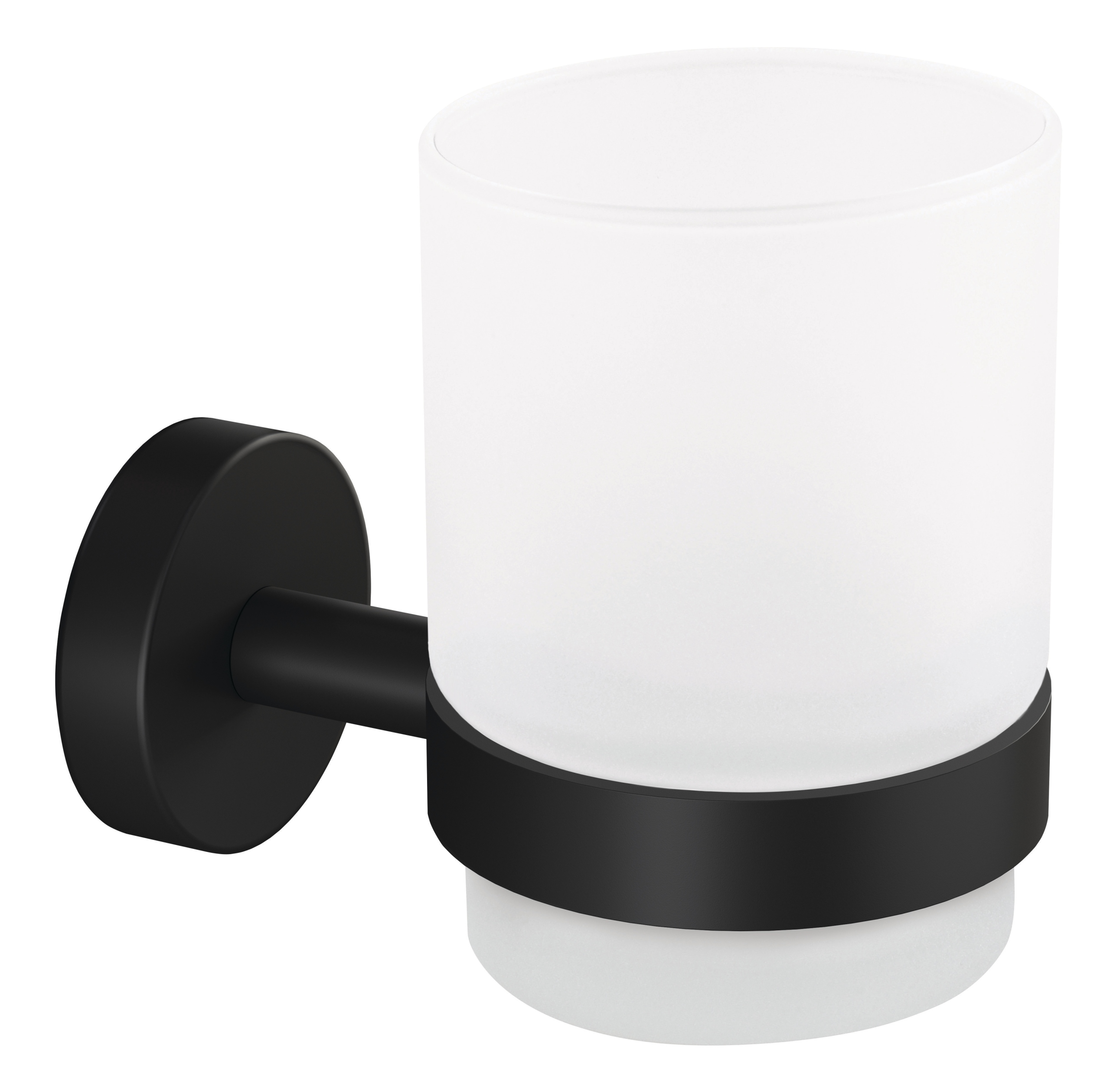 Uchwyt ze szklanką na szczoteczki BEZ WIERCENIA tesa® MOON black