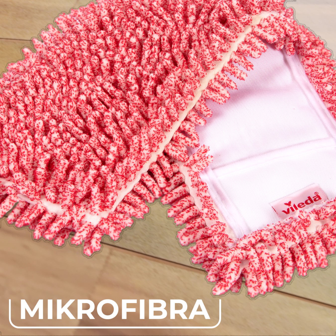 Wkład ma szerokie kieszenie mocujące, dzięki którym bez trudności zamontujesz go na stopie mopa.