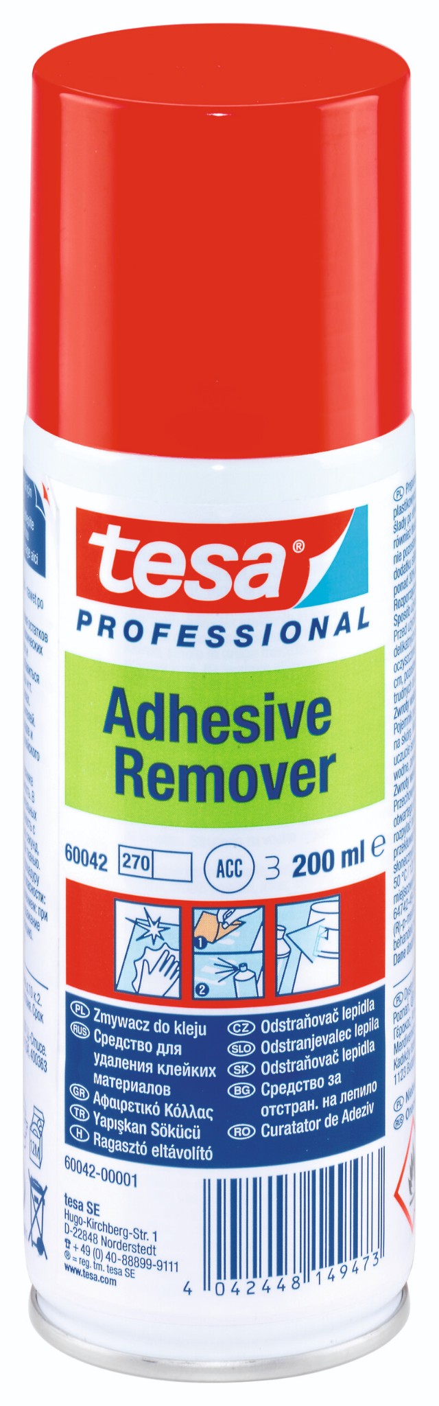 tesa ADHESIVE REMOVER - Środek do usuwania kleju w sprayu - usuwa kleje, etykiety i zabrudzenia tłuszczem, smołą i żywicą - 200 ml