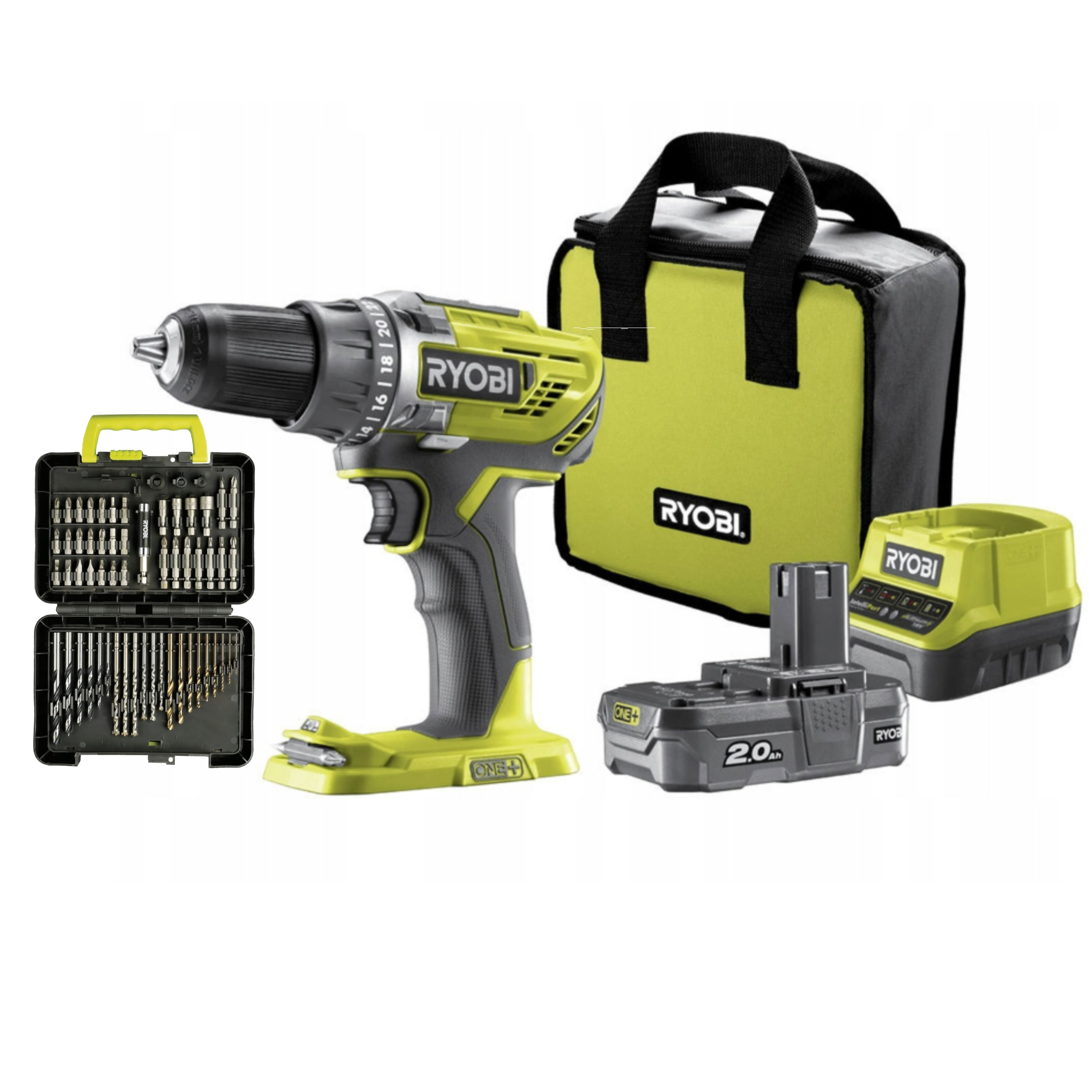 RYOBI Wiertarko-wkrętarka ONE+ 18V + Zestaw bitów 60 szt + Akumulator 2.0Ah