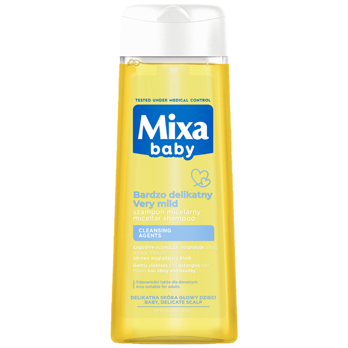 Bardzo delikatny szampon micelarny Mixa Baby to wysokiej jakości kosmetyk, stworzony dla łagodnej, codziennej pielęgnacji włosów i skóry głowy dziecka. Pochłania brud i zanieczyszczenia, doskonale się pieni i nie szczypie w oczy. Stworzony specjalnie z myślą o delikatnej skórze głowy niemowląt. Podczas aplikacji zmienia się w kremową pianę, którą można łatwo spłukać. Idealny także do częstego mycia włosów dorosłych.