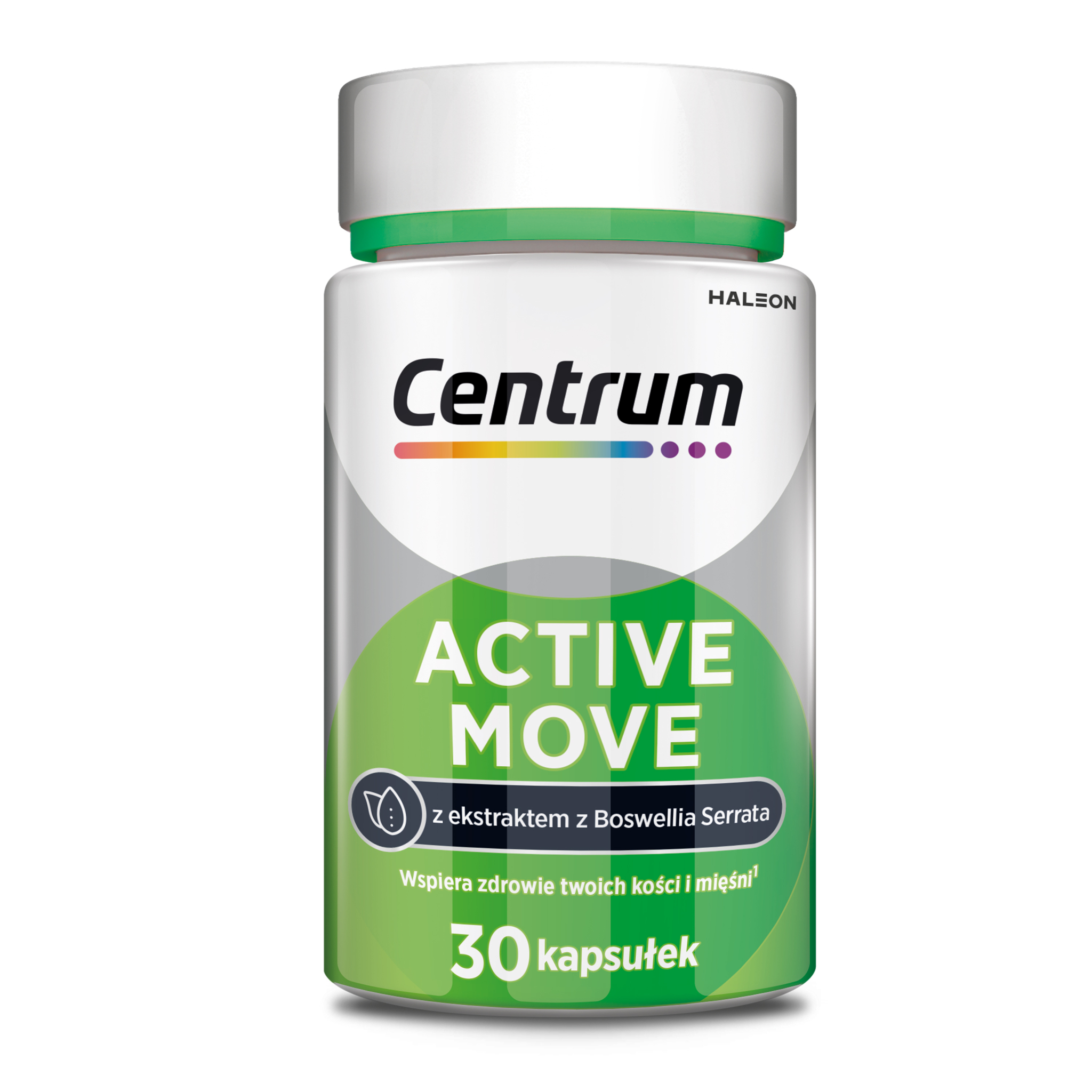 Centrum Active Move z ekstraktem z Boswellia serrata zawiera witaminy i minerały, które przyczyniają się do utrzymania zdrowych kości (witaminy C, D, K i mangan), mięśni (witamina D), chrząstki (witamina C) i tkanki łącznej (mangan).