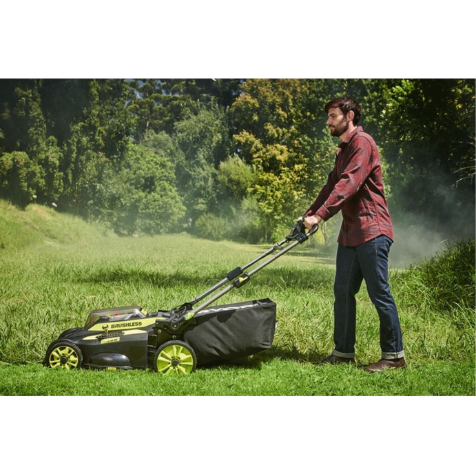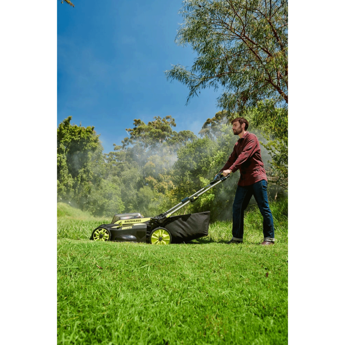 - Idealny sprzęt do dużego ogrodu – zastosowane rozwiązania technologiczne sprawiają, że bezszczotkowa kosiarka 36 V o szerokości koszenia 49 cm marki RYOBI ułatwi pracę nawet w ekstremalnie trudnych warunkach.