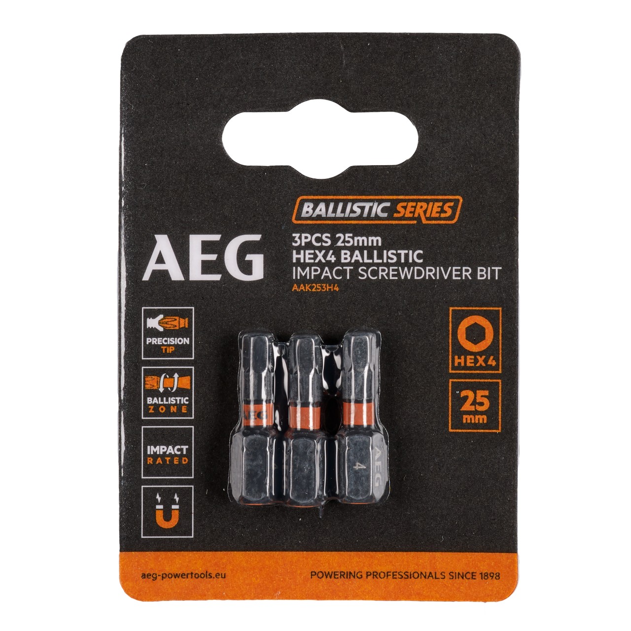 Wzmacniane Bity Ballistic 25 mm HEX 4 SDriver 3szt. AEG AAK253H4