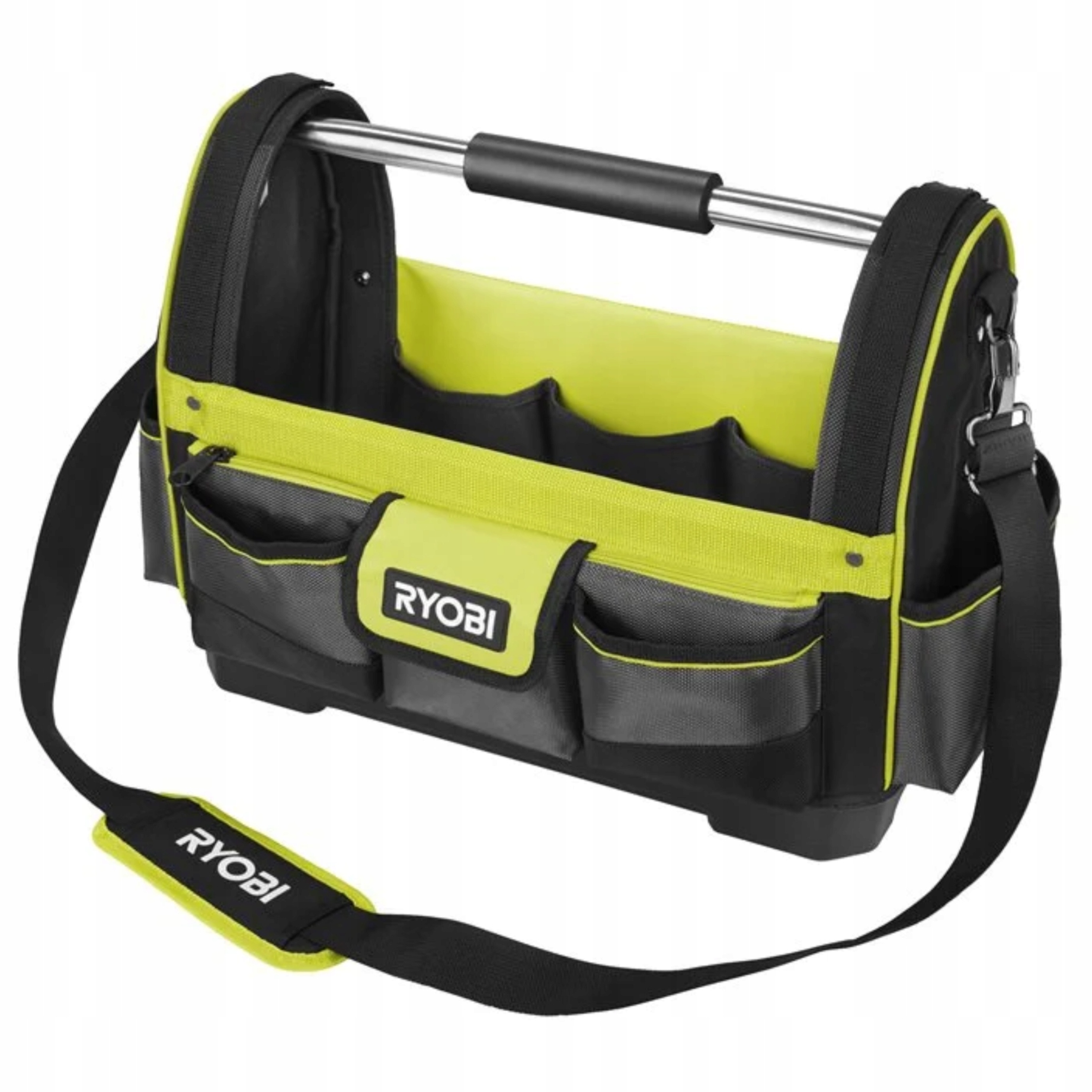 Torba narzędziowa RYOBI 38 l, jest idealnym rozwiązaniem do przechowywania i transportu elektronarzędzi i akcesoriów. Duża otwarta torba na ramię z wytrzymałym dnem z polipropylenu, paskiem z wyściełanym naramiennikiem i wzmocnionym drążkiem ze stali nierdzewnej z ergonomiczną rączką.
