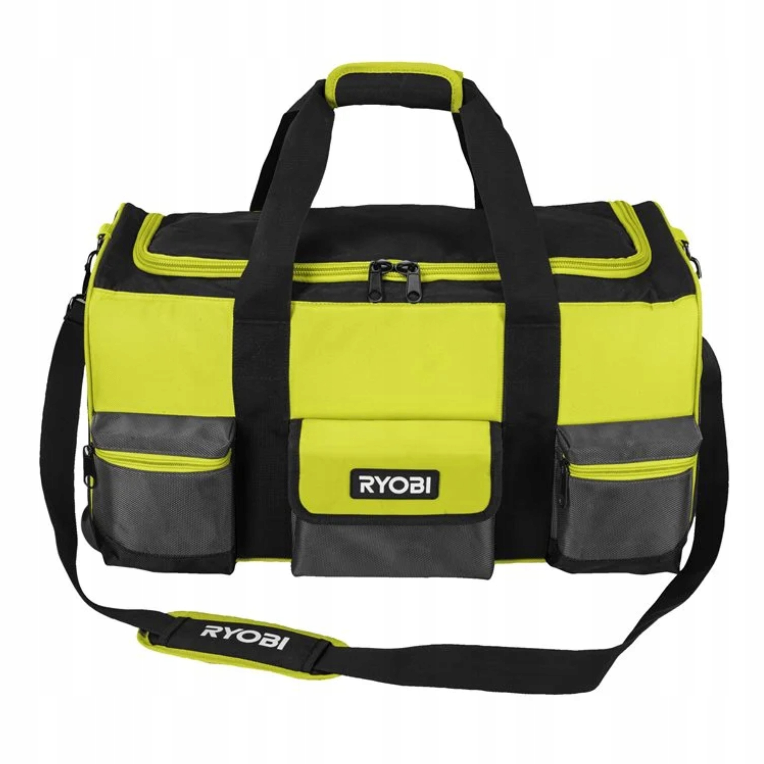 Duża torba narzędziowa RYOBI, jest idealnym rozwiązaniem do przechowywania i transportu elektronarzędzi i akcesoriów. Zawiera: 3 przednie kieszenie, jedna z klapką, 1 otwarta kieszeń z tyłu, 8 wewnętrznych uchwytów na narzędzia ręczne, 2 wewnętrzne otwarte kieszenie, 1 wewnętrzna kieszeń z klapką, wytrzymałe kółka i wysuwany uchwyt