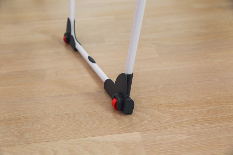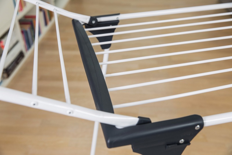 Dzięki nogom obudowanym w kółka, suszarka na pranie może być łatwo przemieszczana po powierzchni bez zarysowań. Suszarka na pranie posiada także dodatkowy wieszak na drobną bieliznę.Suszarka King wyposażona została również w dodatkową blokadę skrzydeł.
