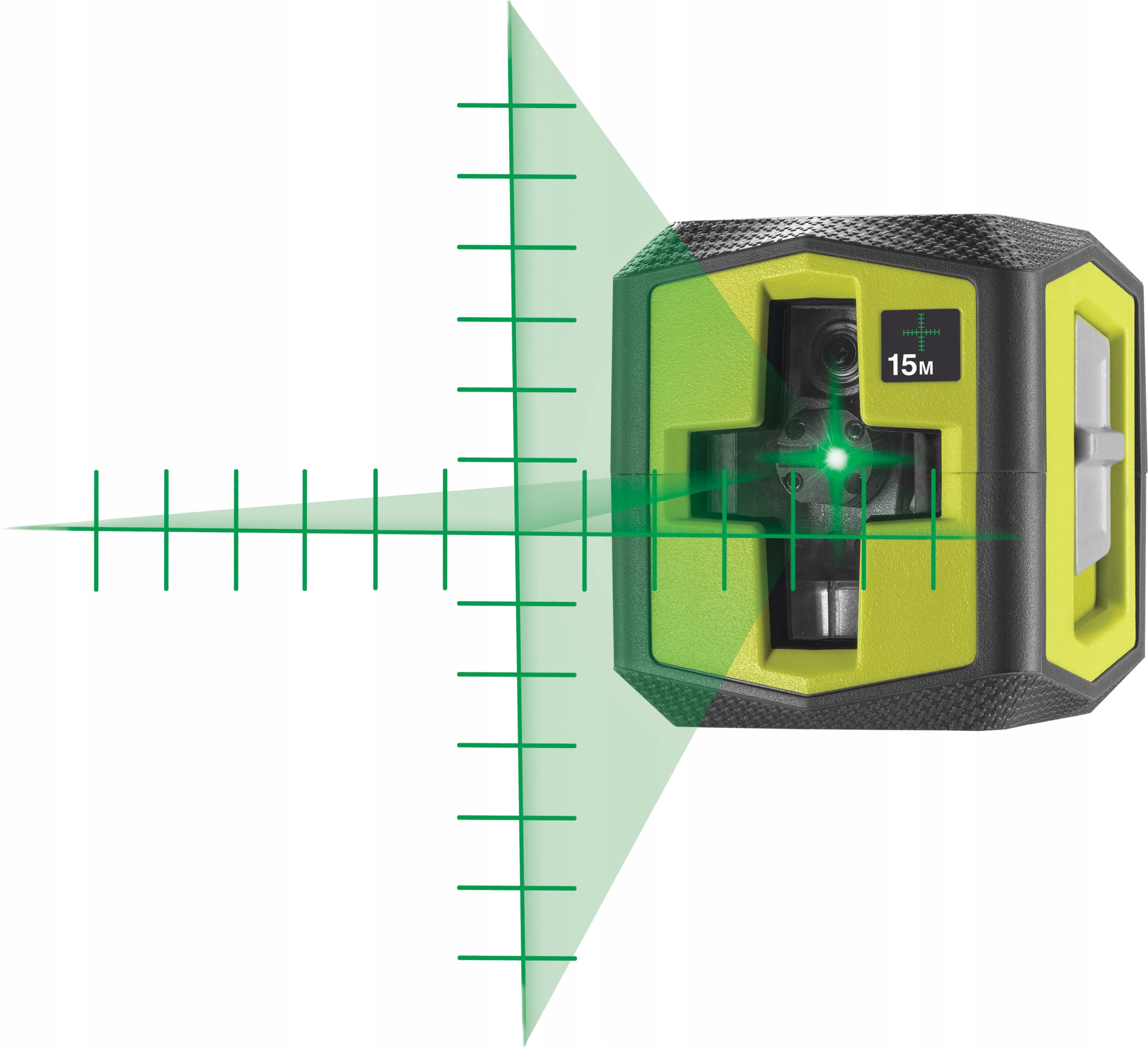 - Jasnozielony kolor wiązki lasera w linii krzyżowej, z liniami prowadzącymi umożliwia użytkownikowi tworzenie wzorów w podobnych odległościach bez konieczności mierzenia każdej przestrzeni z osobna
