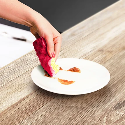 Zmywak kuchenny, który usuwa uporczywe zabrudzenia, nie pozostawiając zarysowań na nawet na tak delikatnych powierzchniach jak teflon
