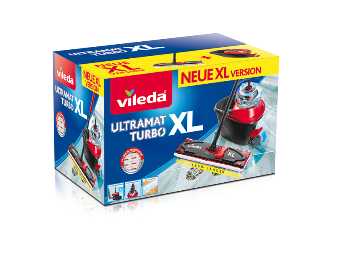 Zestaw Ultamat został wyposażony w skuteczny obrotowy system odsączania mopa. Im dłużej mechanizm będzie w ruchu, tym wkład mopa będzie bardziej odsączony.