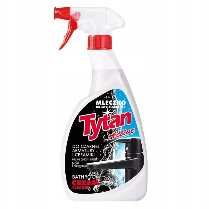 Mleczko do czyszczenia łazienki Tytan jest szczególnie przydatne w utrzymaniu czystości w łazience. Środek bez trudu usuwa osady z kamienia, rdzy, mydła oraz zacieki wodne, tłuste plamy i inny brud. Przeznaczony jest do mycia glazury, terakoty, szkła, plastiku (kabin prysznicowych) jak również powierzchni z chromu, stali nierdzewnej (zlewozmywaki) blatów, okapów, umywalek, wanien i innych. Łatwo się spłukuje, czyszczonym powierzchnią przywraca połysk, a dodatkowo pozostawia świeży i przyjemny zapach.