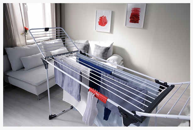 - Następnie można rozłożyć nogi suszarki aż do usłyszenia charakterystycznego „klik”.