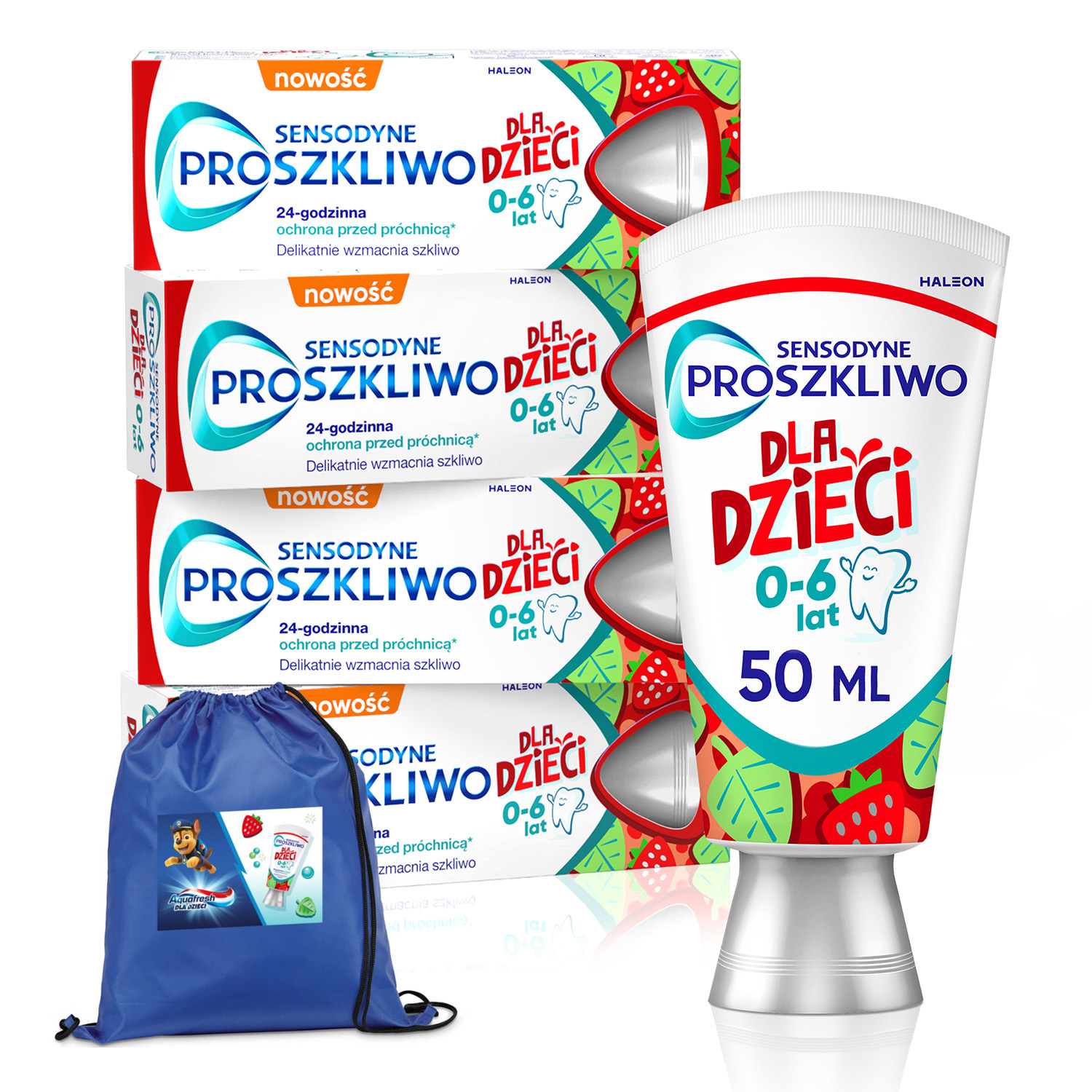 Sensodyne Proszkliwo Dla Dzieci, pasta do zębów 0-6 lat, Delikatnie wzmacnia szkliwo, Zakręcona Truskawka, 50 ml + GRATIS Plecak "Powrót do Szkoły"