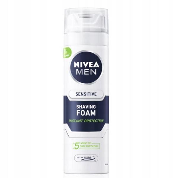 Łagodząca pianka do golenia NIVEA MEN Sensitive chroni wrażliwą skórę twarzy przed podrażnieniami i zacięciami w trakcie golenia. Jej ulepszona, bezalkoholowa* formuła z witaminą E i rumiankiem nie powoduje uczucia pieczenia i jest wyjątkowo łagodna dla męskiej skóry. Natychmiast chroni przed 5 oznakami podrażnionej goleniem skóry: pieczeniem, zaczerwienieniem, uczuciem napiętej i suchej skóry oraz mikro-zacięciami. Ta wyjątkowo łagodna pianka do golenia nie zawiera alkoholu etylowego i ma neutralny zapach. Zmiękcza zarost i zapewnia komfortowe i dokładne golenie wrażliwej skóry twarzy. Po goleniu, skóra staje się gładka w dotyku, wygląda na zdrową i zadbaną.